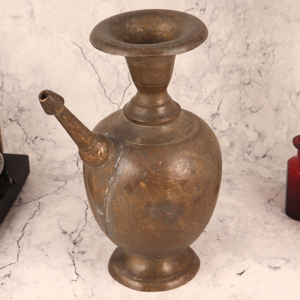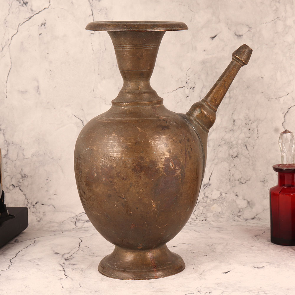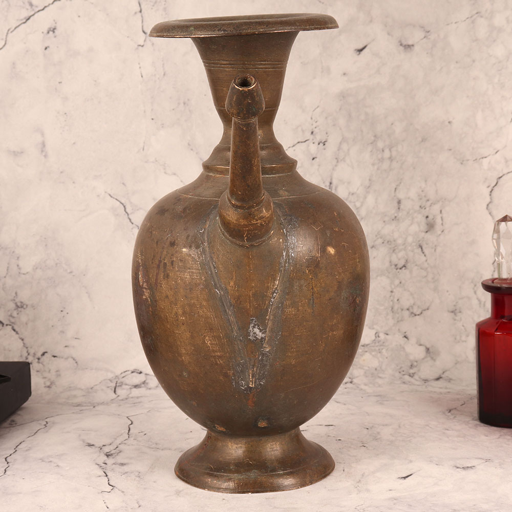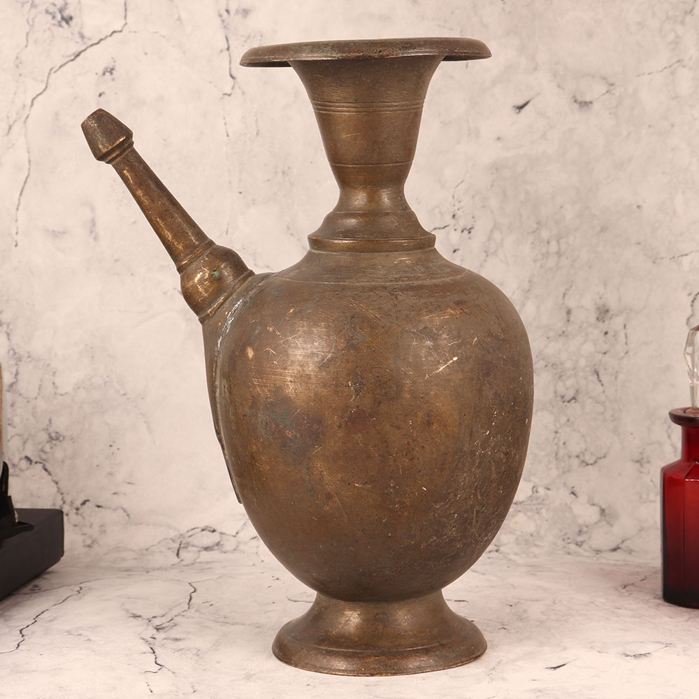 Buy a Vintage Brass Pot with Spout online in an Antique Brown Finish and get a hassle free delivery at your doorstep. Handcrafted by talented Indian artisans, this piece is a testament to their dedication and expertise. Meticulously fashioned from high-quality brass, this vintage pot exudes timeless charm with its antique brown finish. Its versatility knows no bounds, making it a perfect addition to any space. Whether adorning your home, office, restaurant, hotel, cafe, or shop, it lends an air of sophistication and history. Not just a decorative piece, this brass pot boasts a functional spout, allowing it to double as a unique flower pot. Its aesthetic appeal and practicality make it a cherished item for collectors looking to expand their vintage treasures. Furthermore, it makes for an ideal gift on special, festive, or auspicious occasions. Gifting this vintage brass pot is a gesture of appreciation and admiration for its rich heritage and the craftsmanship that went into its creation. Elevate your surroundings with this Vintage Brass Pot, a timeless fusion of artistry and utility, ready to enchant both your space and your loved ones.