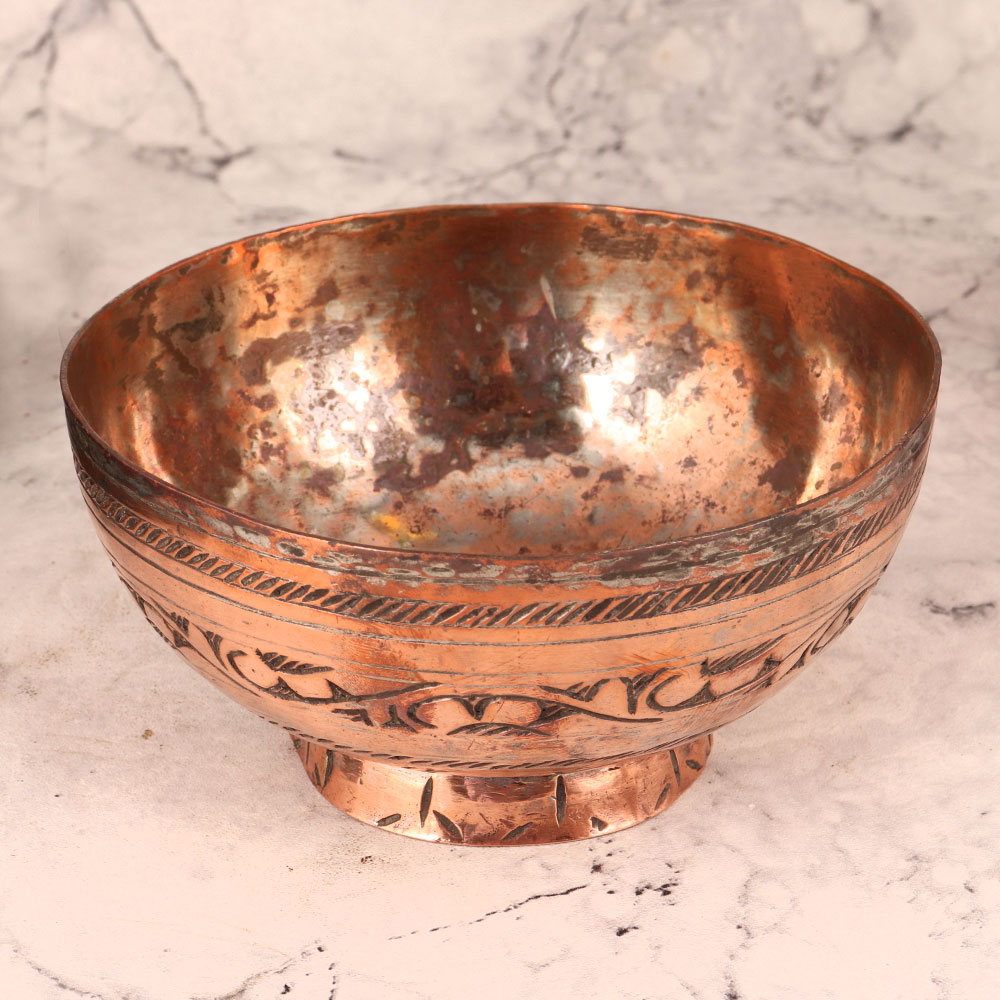 Behold the exquisite charm of our Vintage Brass Bowl, a magnificent testament to the artistry of highly talented artisans and a tribute to the opulent heritage of Islamic Art. Crafted with meticulous precision from high-quality Brass, this timeless piece showcases a mesmerizing engraved design, reminiscent of an era when craftsmanship was paramount. The antique brown finish lends an air of authenticity, evoking a sense of nostalgia that transports you to a bygone era. Originally designed for serving food, this vintage treasure now finds its true purpose as a decorative masterpiece. Whether adorning the mantelpiece of your home, adding character to your office space, or enhancing the ambiance of a restaurant, hotel, shop, or cafe, this vintage Brass bowl will captivate onlookers with its allure. It's a must-have for collectors of vintage artefacts and an ideal exhibit piece for showcasing the beauty of history. When seeking a distinctive gift for a family, friends or relatives, the Vintage Brass Bowl shines as a symbol of enduring beauty. Present it on special, festive, or auspicious occasions, and watch as it becomes a cherished heirloom, a piece of art, and a conversation starter for generations to come. Elevate your surroundings with this magnificent vintage Brass bowl, a fusion of art and history that speaks volumes about your appreciation for the finer things in life.