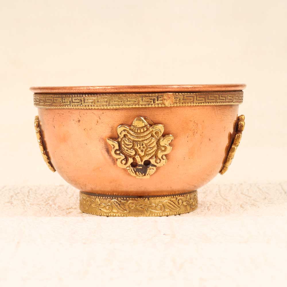 Immerse yourself in the splendor of the Himalayas with this hand-etched copper brass bowl showcasing the finest Nepalese artistry. Meticulously hammered by skilled craftsmen, the intricate floral and geometric motifs transport you to the ancient bazaars of Kathmandu. With its vibrant patina and tactile hammered texture, this bowl infuses exotic elegance into any space. Display it prominently on your coffee table or console, filled with potpourri, candles, or fresh blooms. The multidimensional design catches and reflects light beautifully. An ideal gift for the world traveler or lover of handicrafts. Handcrafted using traditional repoussé techniques passed down through generations, every detail echoes the rich cultural heritage of Nepal. Each purchase supports local artisans, helping to keep these traditions alive. Make this heirloom-quality bowl the stunning focal point of your home décor.