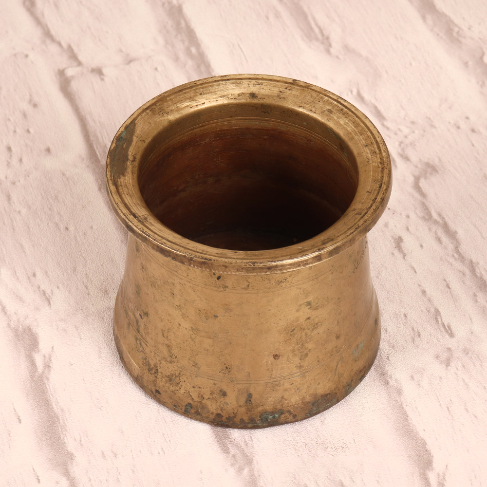 Unlock the timeless beauty and spiritual significance of the traditional South Indian panchpatra with this exquisite brass pot. Crafted with meticulous attention to detail, this versatile vessel is the perfect addition to your home decor and sacred rituals. This panchpatra is more than just a decorative piece - it's a tool for deepening your spiritual practice. Use it to hold offerings during puja, aarti, and other Hindu ceremonies, allowing you to connect with the divine in a meaningful way. Its five compartments represent the five elements, inviting you to honor the natural world and your place within it. Whether you're a seasoned practitioner or new to the world of Hindu rituals, this vintage brass panchpatra will elevate your sacred space and inspire your spiritual journey. Its classic design and sturdy construction make it a timeless investment that will be cherished for years to come. Embrace the rich heritage of South Indian art and let this beautiful vessel guide you on your path to enlightenment.