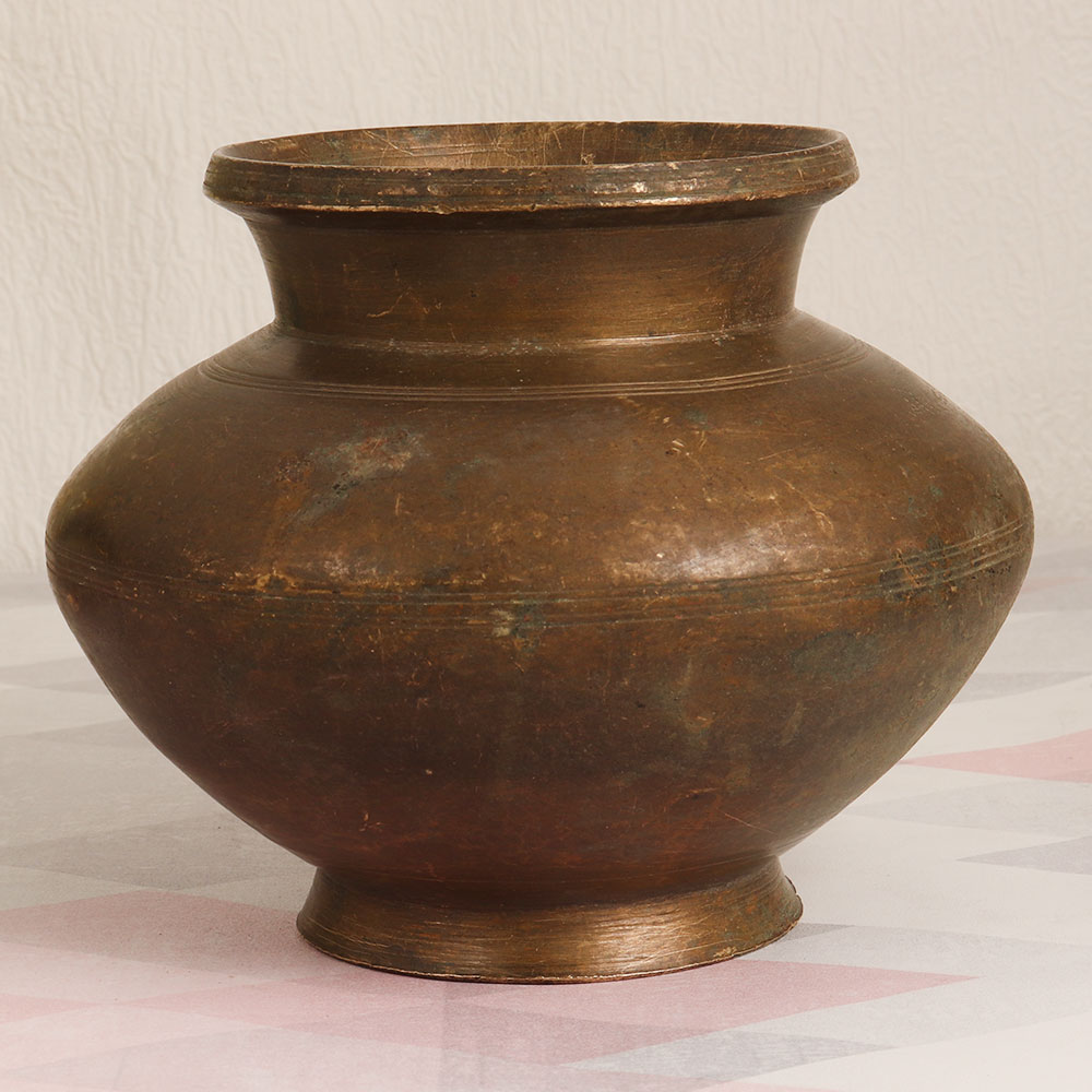 Buy a vintage brass holy water pot online that is exquisitely crafted in an antique brown finish by highly talented Indian artisans, steeped in the heritage of South Indian artistry. Made from high-quality brass, this piece bears the mark of meticulous craftsmanship and heritage that will leave your guests in awe. This versatile artefact can be seamlessly integrated into a variety of settings, be it at home, office, restaurant, hotel, cafe, or shop. Beyond its ornamental beauty, it serves a sacred purpose. Perfect for havans, rituals, and auspicious occasions, this pot gracefully holds holy water, enhancing the spiritual atmosphere of any gathering. Placing it in the north direction of your room is believed to radiate positive energy, fostering a sense of tranquillity and well-being. Additionally, it can serve as a unique indoor flower pot, breathing life into your space. As a collector's item, it is a rare find, and it can be an ideal gift for your family, friends or relatives on special, festive, or auspicious occasions. Embrace tradition and elegance with this vintage brass holy water pot, a piece of artistry and spirituality combined.