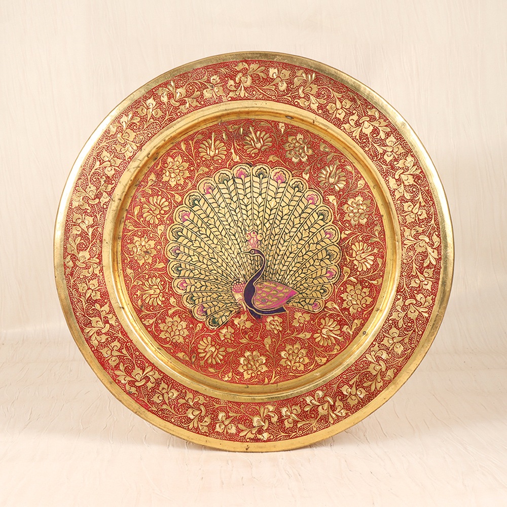 Bring the enchanting elegance of the past into your present with our Vintage Brass Round Hanging Plate. This exquisite piece is a testament to the timeless artistry of brass, featuring a captivating peacock design that will captivate the eye and elevate your décor. Escape the ordinary and surround yourself with the beauty of the natural world. This vintage-inspired brass plate showcases the majestic peacock, a symbol of pride and beauty. The intricate engraving and vibrant enamel work create a mesmerizing display that will transport you to a bygone era of elegance and sophistication. Whether you choose to hang this piece on your wall or display it on a tabletop, the Vintage Brass Round Hanging Plate will elevate your space and ignite a sense of wonder. Ideal for those who appreciate the timeless charm of vintage-inspired design, this heirloom-quality plate will be a cherished addition to your home for years to come
