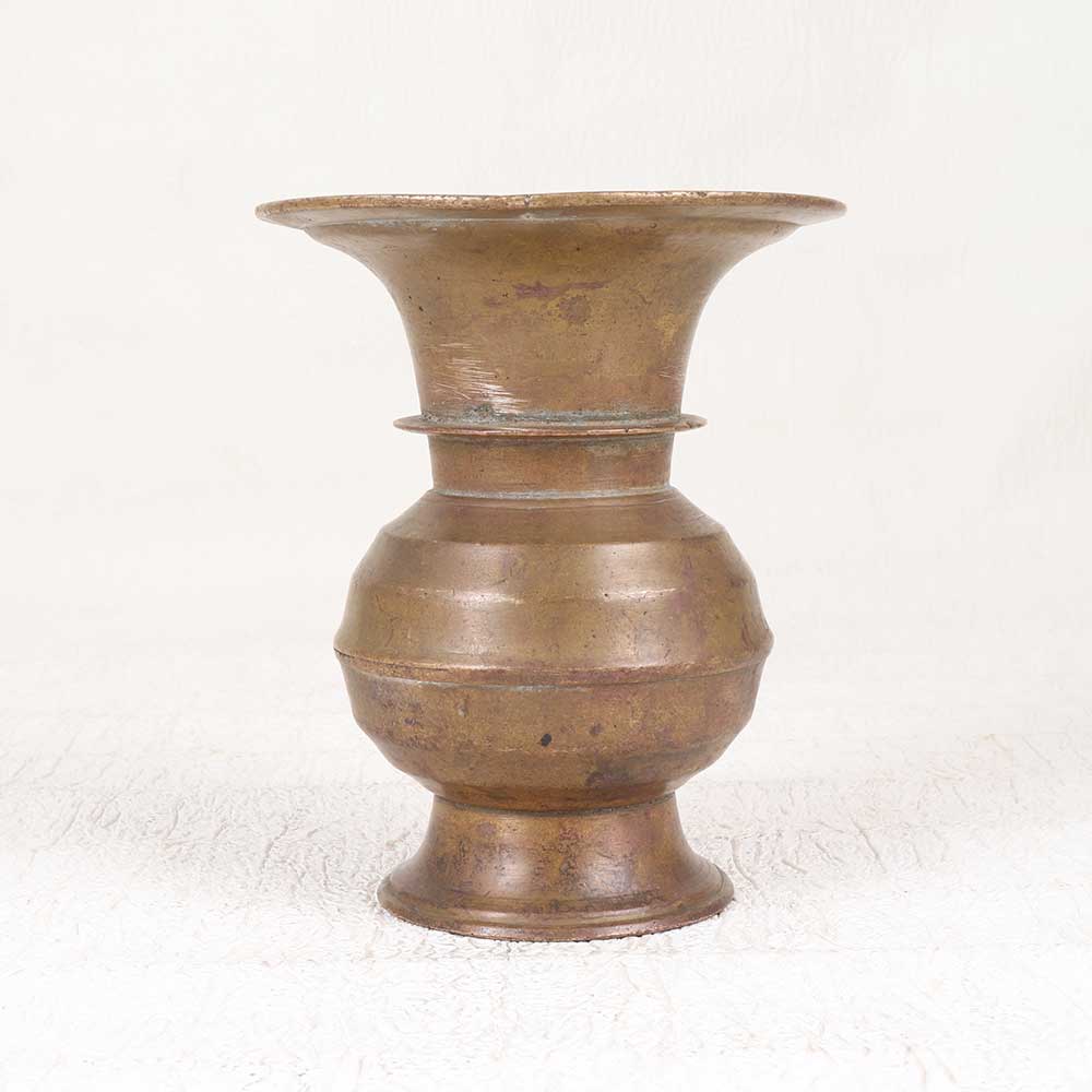 With its elegant vintage design, this solid brass pot from South India makes a striking decorative accent. The plain brown finish allows the natural warmth and richness of the brass to shine through. Place this pot on an entryway table or console and fill it with fresh flowers, foliage, or other greenery to make a welcoming first impression. Its clean, simple lines complement both traditional and contemporary home decor. Or display it in your living room alongside candles, shells, stones, or other cherished objects to create an artful vignette. This pot can also be used to elevate your tablescapes. Fill it with napkins, utensils, or a petite floral arrangement to add a touch of vintage charm to your next dinner party. Expertly handcrafted in South India, this pot reflects the region's renowned metalworking traditions. Let it infuse your home with artisanal appeal and simple, timeless style.