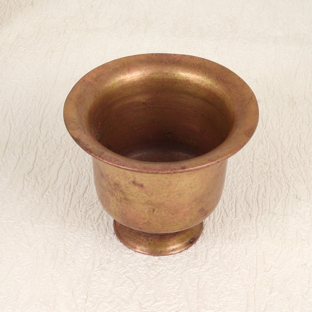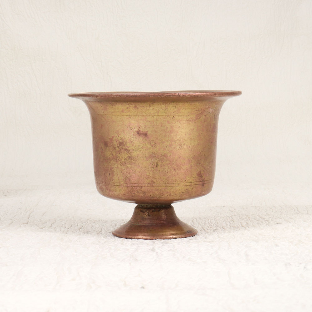 Immerse yourself in the timeless spirituality of traditional Indian rituals with this exquisite Vintage Brass Holy Kumkum Cup. Crafted by highly skilled and experienced artisans in India, this sacred vessel is a testament to the rich cultural heritage and artistry that has been passed down through generations. Made from high-quality brass, the cup features a captivating antique brown finish, lending it an air of authenticity and vintage charm. This handmade creation is not merely a utilitarian object but a work of art that adds a touch of grace to any prayer room, be it at home, office, restaurant, hotel, or cafe. Designed specifically for holding kumkum tilak during prayer, rituals, and havans, this cup becomes a focal point for spiritual practices. Its timeless aesthetic also makes it a perfect addition to any vintage collection, serving as a symbol of cultural appreciation and reverence. Beyond personal use, this Holy Kumkum Cup makes for an extraordinary gift for your family, friends or relatives on special, festive, or auspicious occasions. Share the beauty of tradition and spirituality with a cherished artefact that transcends time and connects hearts through its exquisite craftsmanship.