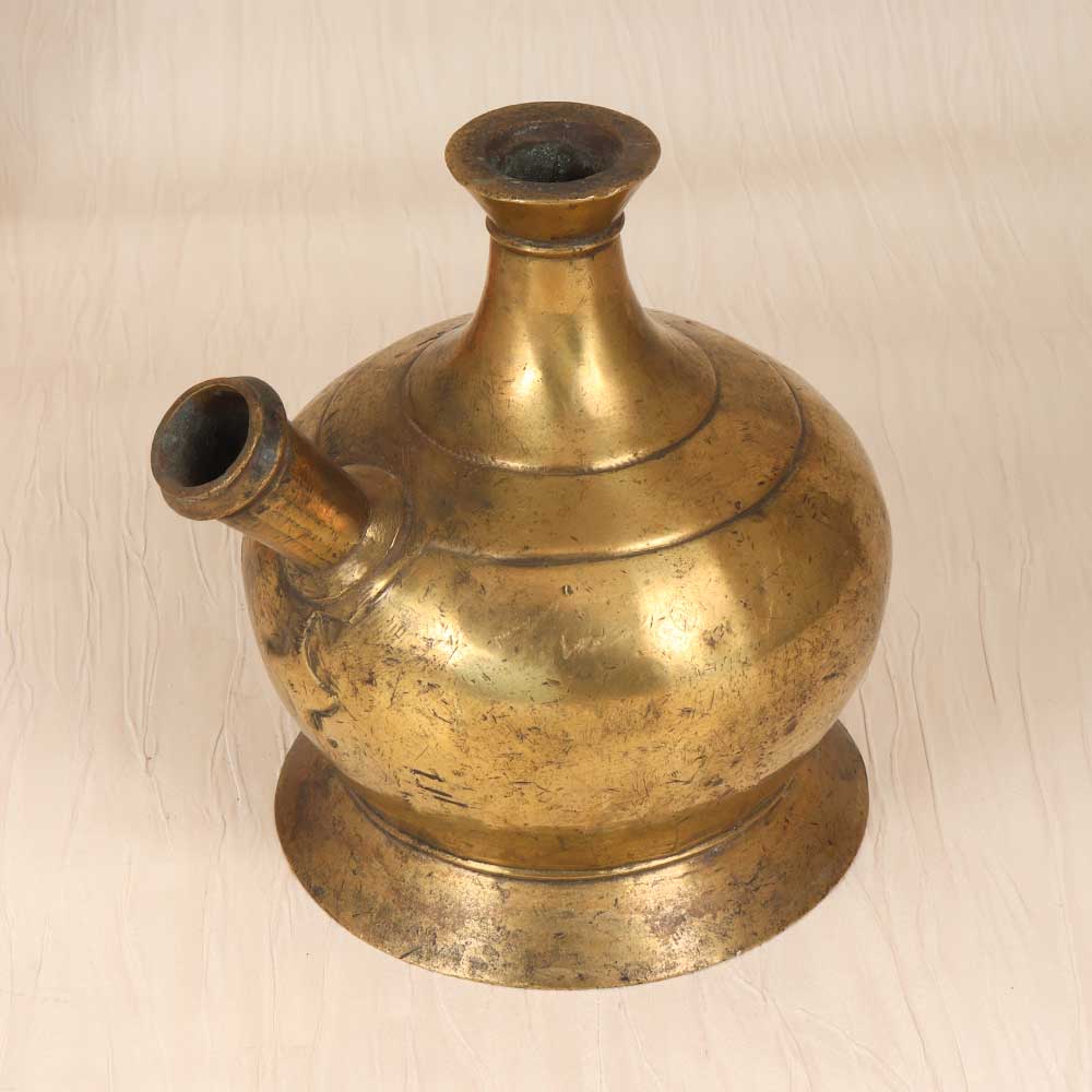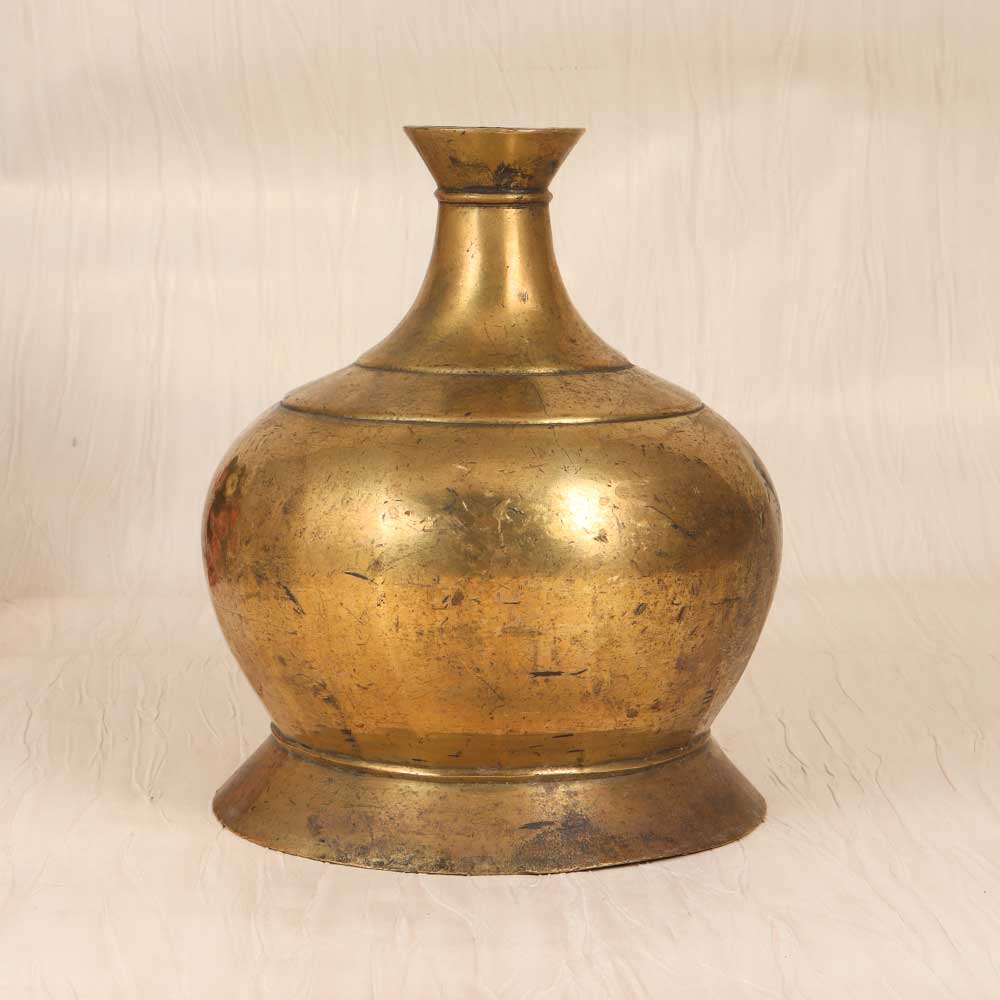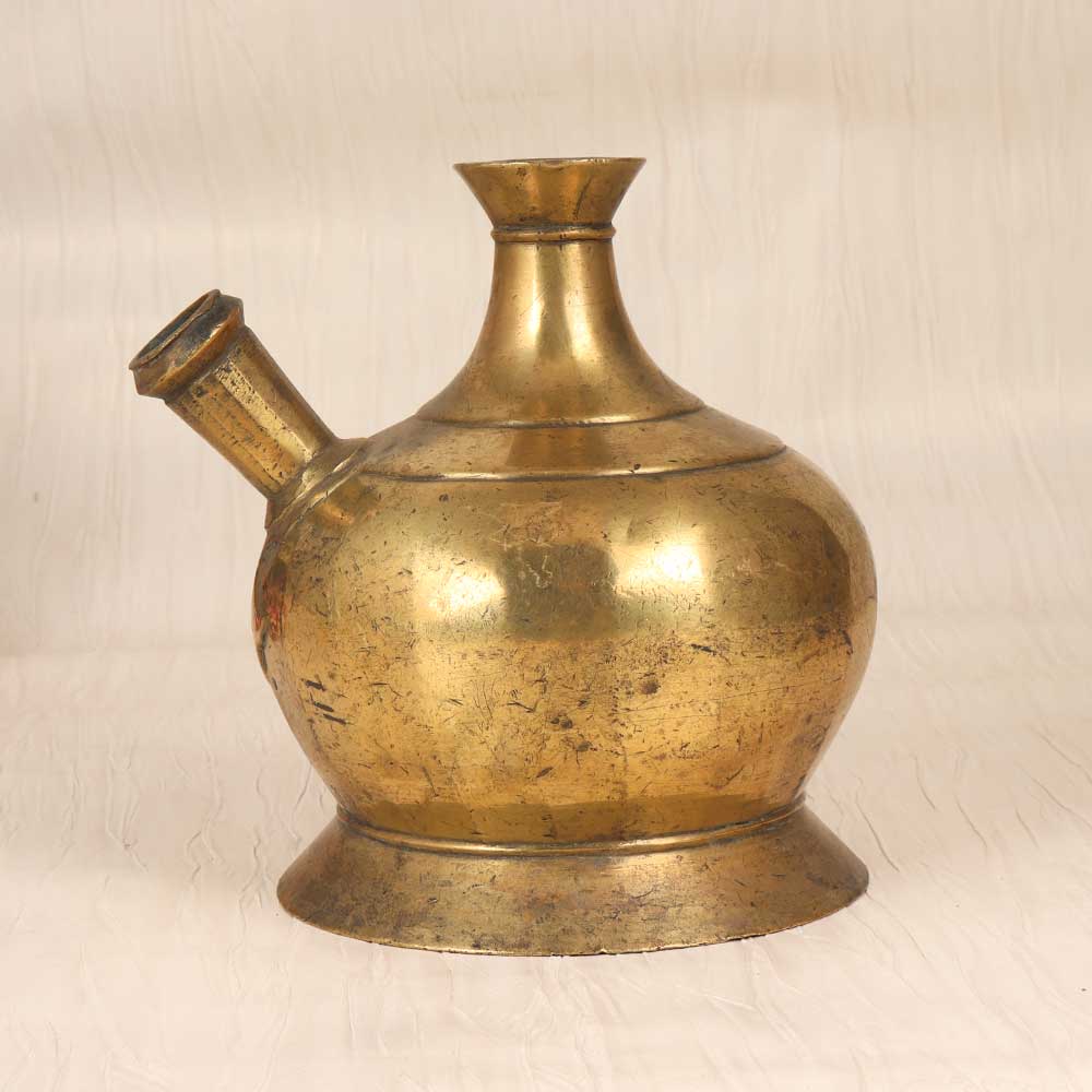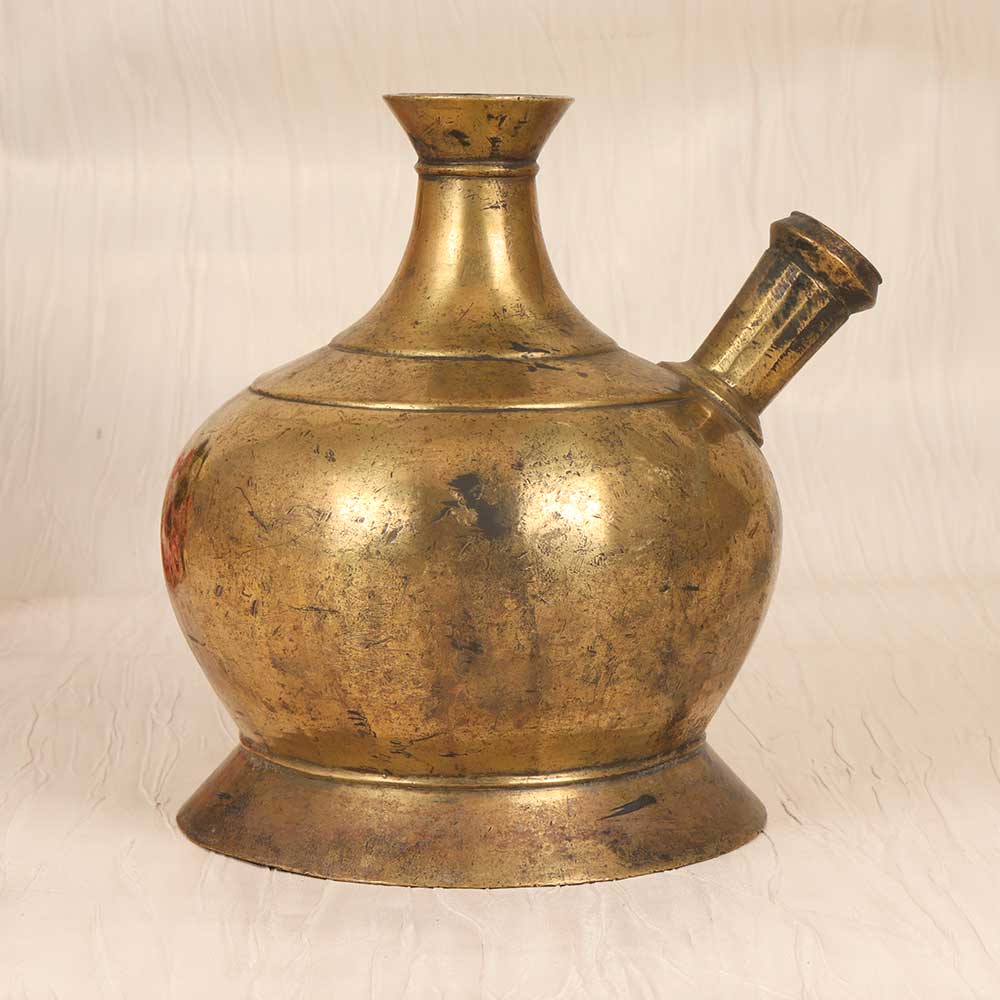 Step back in time with this vintage brass hookah base that makes a bold decorative statement. Handcrafted by skilled artisans in the Himalayas, this solid brass piece features exquisite hand-hammered detailing for an exotic, one-of-a-kind look. Display this brass hookah base prominently to infuse your home with exotic flair and old world romance. Its intricate craftsmanship is sure to spark conversation and delight guests. You can also use it as a unique vase or let it take center stage atop a console table or bookshelf. This handmade brass artwork evokes faraway lands and mystical times gone by. For an exotic focal point that transports your home, look no further than this vintage brass hookah base.