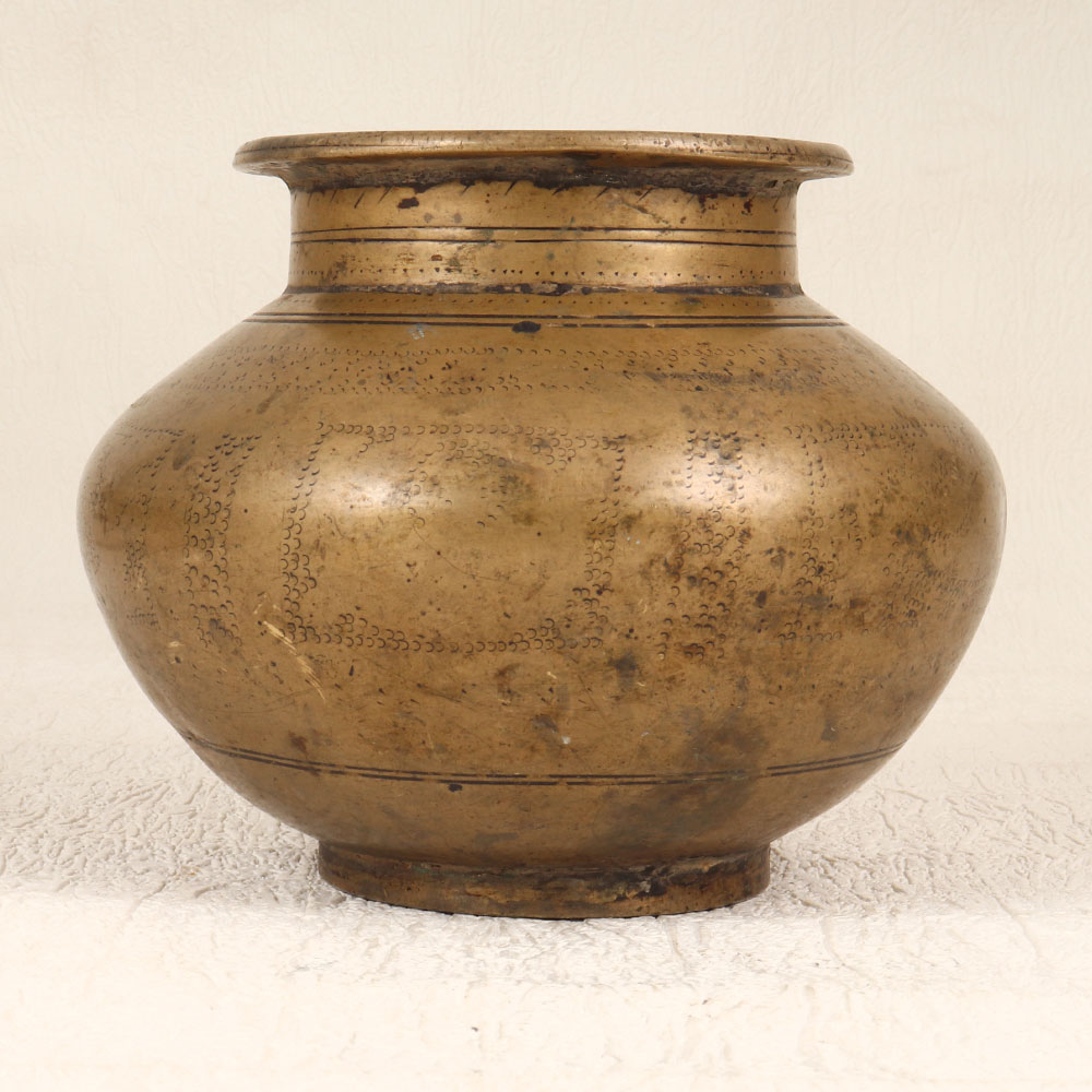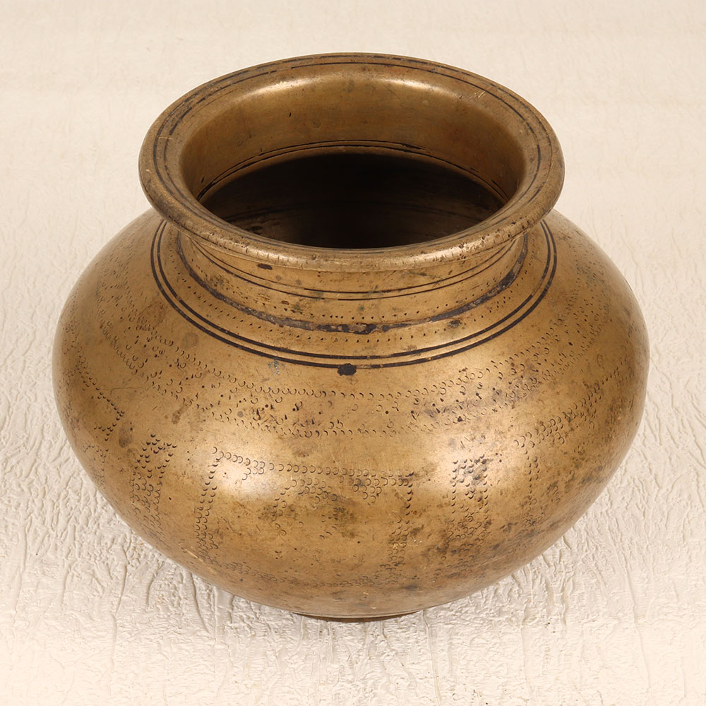 This Vintage Brass Holy Water Pot is a timeless embodiment of spirituality and craftsmanship. Imbued with the sacred aura of South Indian Art, this exquisite piece is meticulously handcrafted by highly skilled Indian artisans. Cast from high-quality brass, its antique brown finish exudes a charming patina, evoking a sense of heritage and reverence. This holy water pot serves as a cherished companion during prayers, rituals, and havans, cradling the sanctified waters with an air of grace. Versatile in its use, it seamlessly transitions to an indoor flower pot, adding an elegant touch to any space - be it your home, office, restaurant, hotel, or cafe prayer room. An exceptional addition to vintage collections, this pot narrates stories of tradition and devotion. Its thoughtful design invites admiration, making it an ideal gift for your family, friends or relatives on special, festive, or auspicious occasions. Embrace the spiritual heritage and aesthetic allure with this Vintage Brass Holy Water Pot, a testament to enduring craftsmanship and sacred moments.