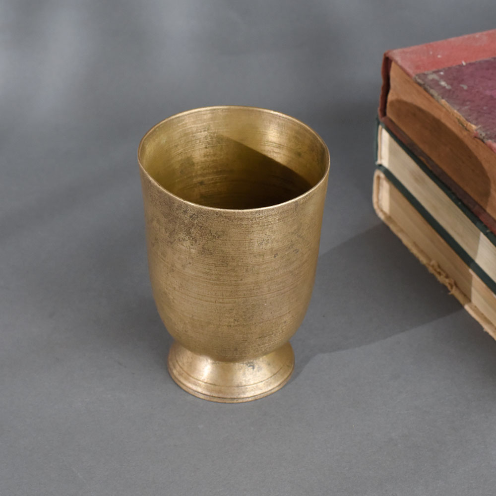 Introduce a spiritual touch to your rituals with this Vintage Holy Brass Glass, a simple yet timeless piece of traditional Indian craftsmanship. Handcrafted from solid brass, this sacred tumbler features a classic cylindrical shape with a gently curved base and a naturally aged patina. Traditionally used during pooja ceremonies for offering water or sacred liquids, it can also serve as a vintage collectible or decorative accent in your home temple. Its minimalist design reflects purity and devotion, making it a meaningful item for spiritual settings or gifting during religious occasions.