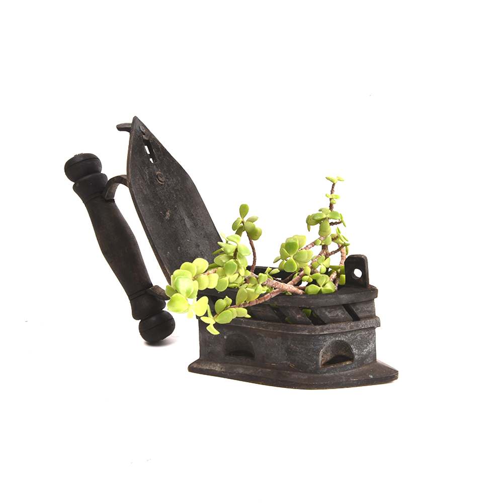 Brass Charcoal Sad Iron with Nice Turned Wooden Handle and Decorative Handle Post. It is Authentic and a Very Rare Home Collectible.
