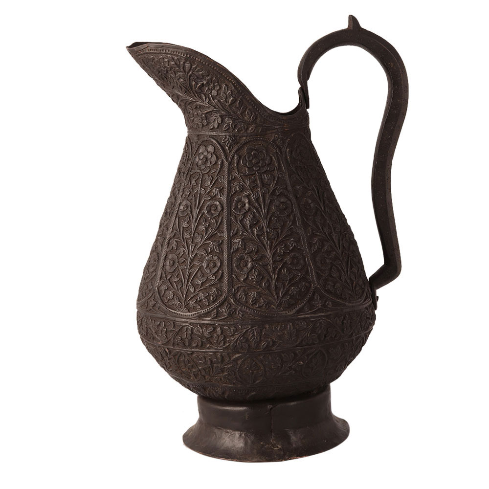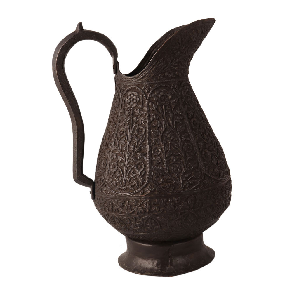 A beautiful Islamic water jug with vintage style engraving. It is made of copper and has a handle to hold it. An ideal item for your collection that will catch the eye of every visitor to your home or office.