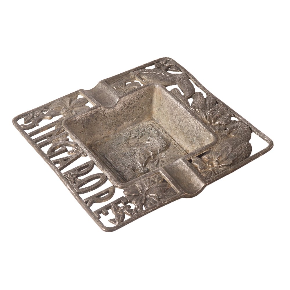 Buy a metal ashtray online on our website and get hassle-free delivery to your doorstep. This ashtray is made of high quality metal and leaves a remarkable impression in decoration. Engraved with beautiful floral motifs and birds and the text "SINGAPORE". One of the best metal ashtrays in India for you, your friends and relatives. An affordable ashtray to gift your friend, brother, cousin or relative on any occasion. Decorate your home, office, business or hotel with this antique style ashtray. An incredible item for your vintage art collection, decoration or exhibition.