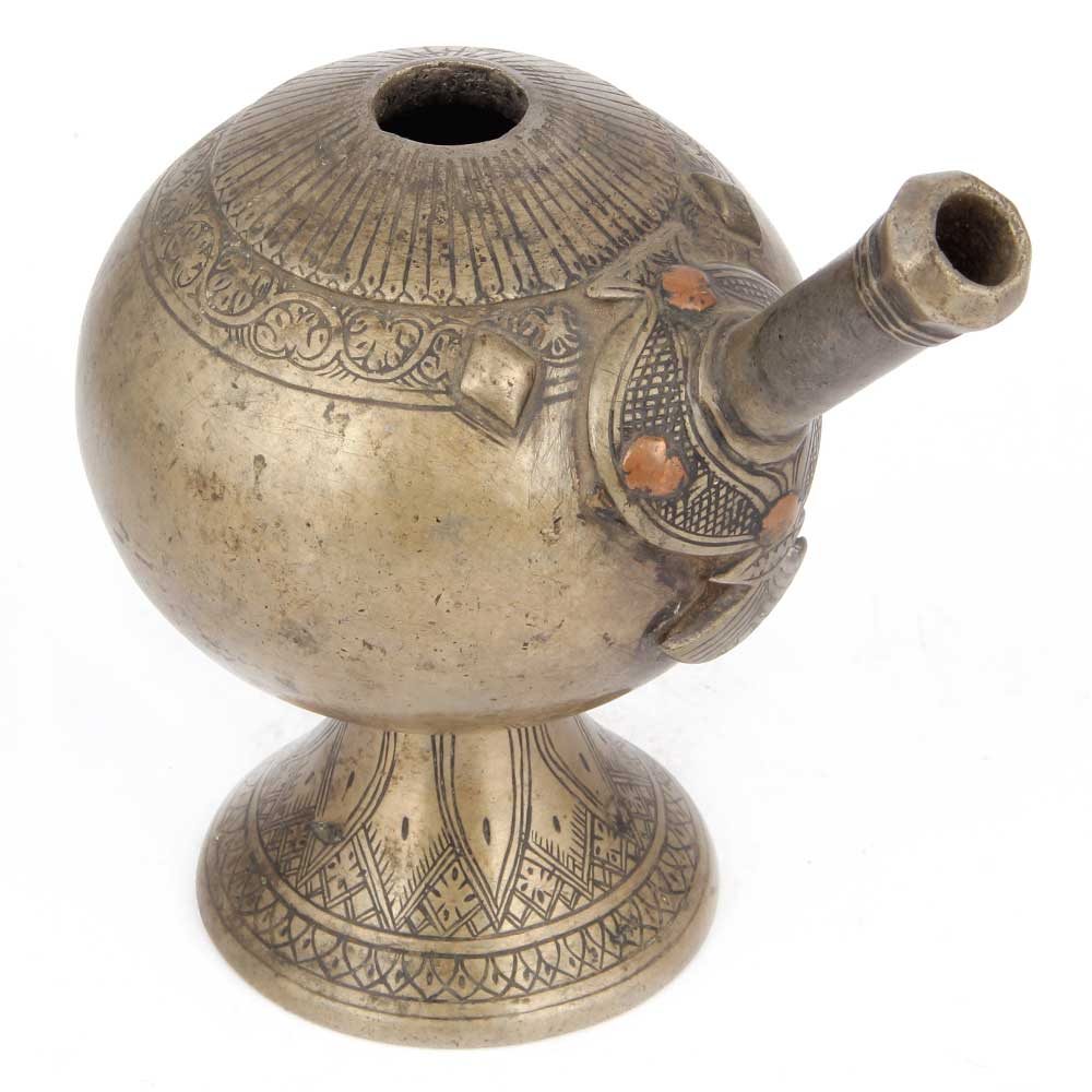 Vintage Hookah Pot Was Used for Smoking Tobacco Using a Funnel and a Pipe with a Base.