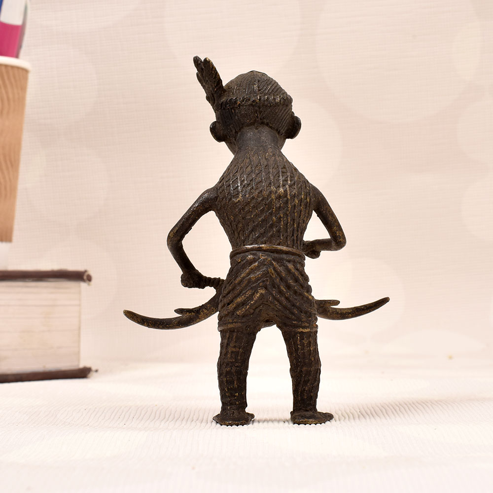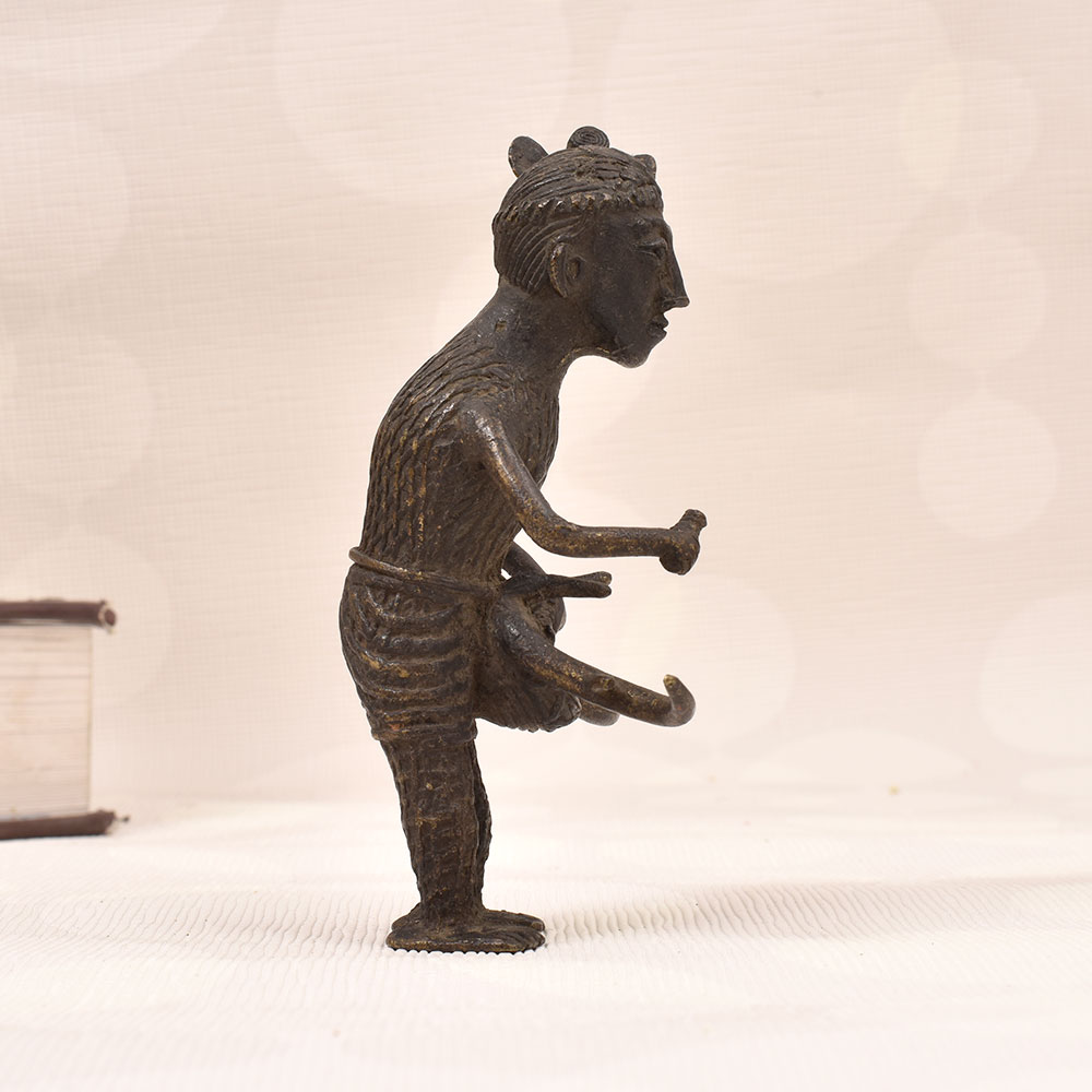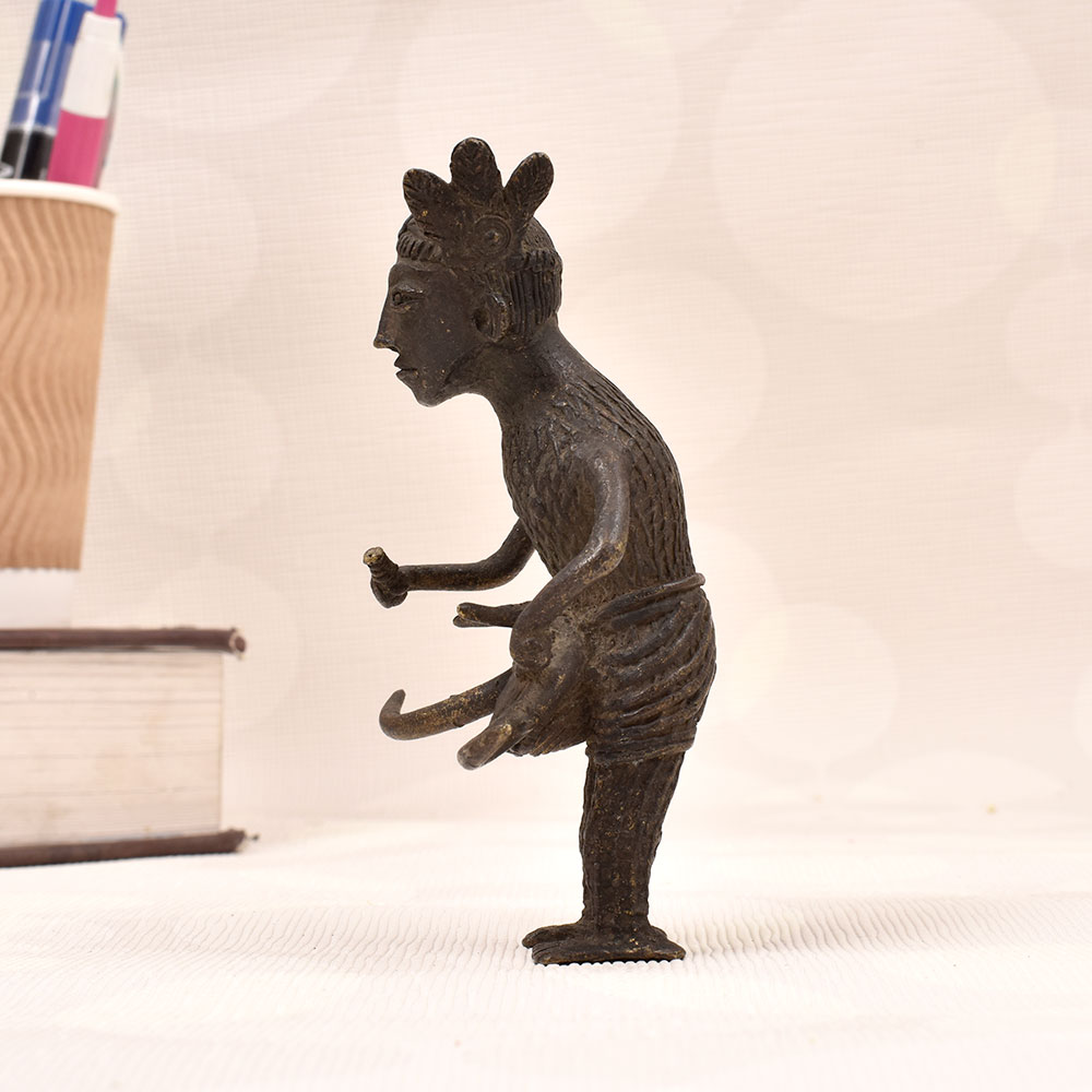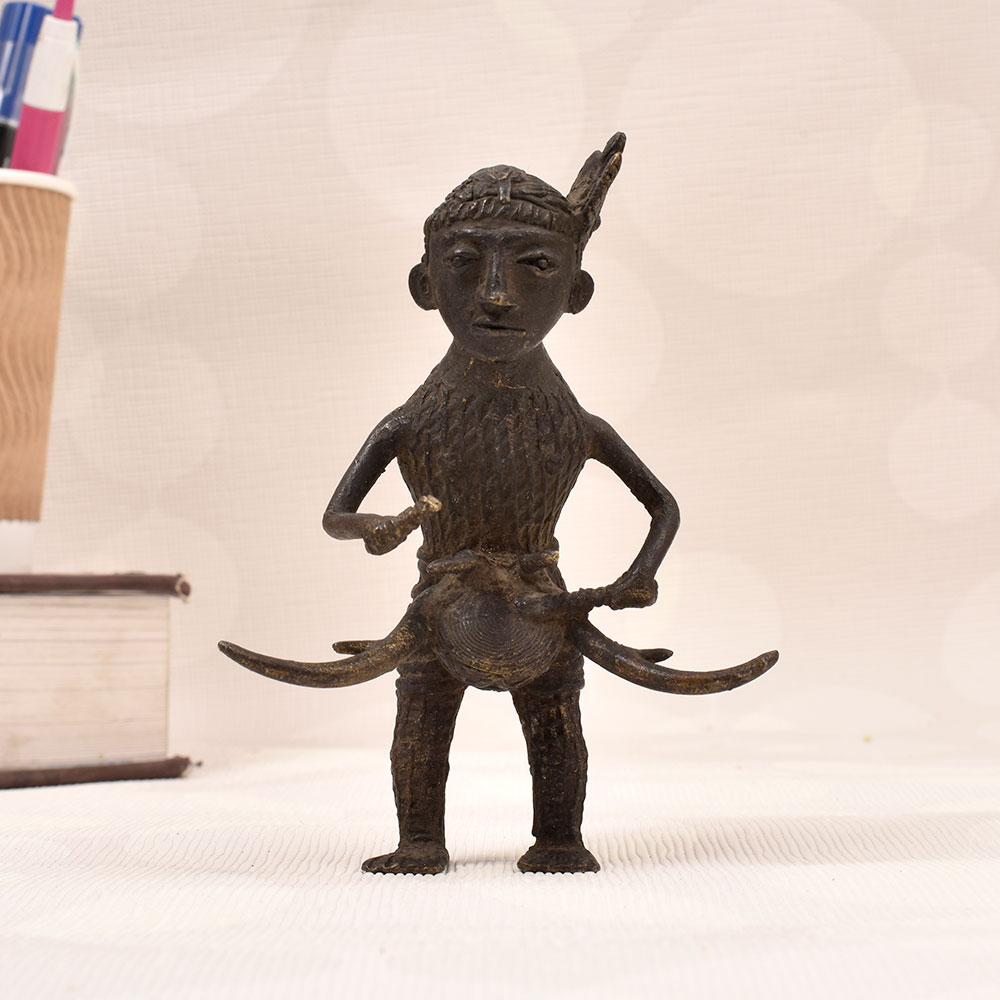 Hear the thunderous beat of the drum echoing through your living room with this stunning brass statue. Crafted with exquisite detail in the unique Naga Art style, this one-of-a-kind piece will transport you to the heart of a lively tribal celebration. This brass drum player statue is more than just a decorative accent - it's a work of functional art that will energize any room. Imagine its rhythmic presence livening up your home office, bringing an air of inspiration to your yoga studio, or igniting conversation at your next dinner party. The Naga people of Northeast India are renowned for their vibrant artistic traditions, and this statue captures their celebratory spirit. Display this piece to honor the rich cultural heritage of the Naga, and let its powerful, primal energy elevate your space. Whether you're a collector of tribal art or simply seeking a distinctive home decor piece, this brass drummer statue is sure to captivate all who behold it.