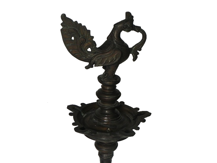 This Beautifully Shaped Vintage Oil Diya is Known as Peacock Oil Lamp(Peacock Diya). This Can Be Observed by the Design, the Symbols and the Figures Sculptured on This Lamp. It Adds Spiritual Flavor to Your Decor.