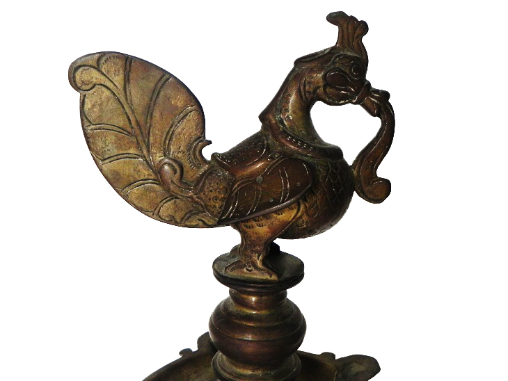This Beautifully Shaped Vintage Oil Diya is Known as Peacock Oil Lamp(Peacock Diya). This Can Be Observed by the Design, the Symbols and the Figures Sculptured on This Lamp. It Adds Spiritual Flavor to You Decor.