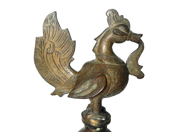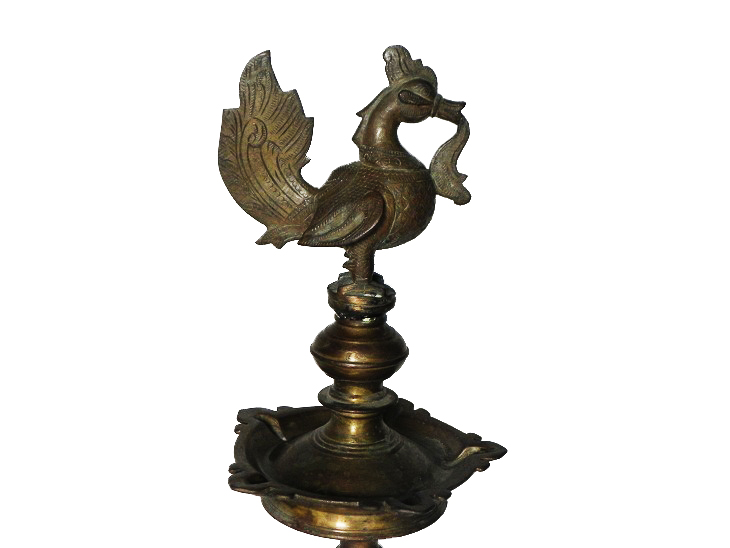 This Beautifully Shaped Vintage Oil Diya is Known as Peacock Oil Lamp(Peacock Diya). This Can Be Observed by the Design, the Symbols and the Figures Sculptured on This Lamp. It Adds Spiritual Flavor to You Decor.