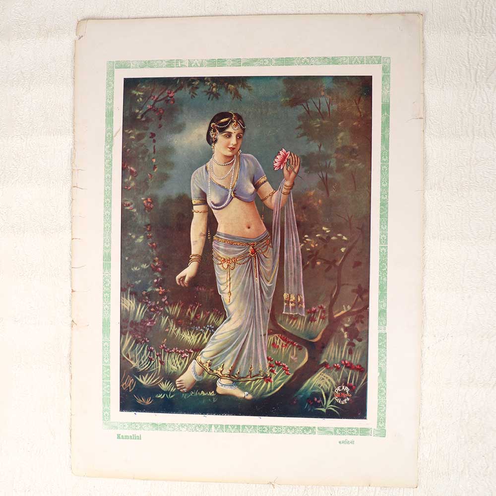 Step back in time with this 19th-century oleograph depicting a graceful Indian woman holding a flower. The rich, hand-colored artwork on textured paper transports you to an era of exotic fashions and intricate designs. Add a touch of history and visual intrigue to your home with this rare oleograph print. The serene image brings a sense of tranquility and elegance wherever it's displayed. Ideal for vintage decor lovers who appreciate exotic artifacts. This stunning artwork from a bygone era makes a special addition to a bedroom, living room, office or other space. Rediscover the beauty of the past with this antique print.