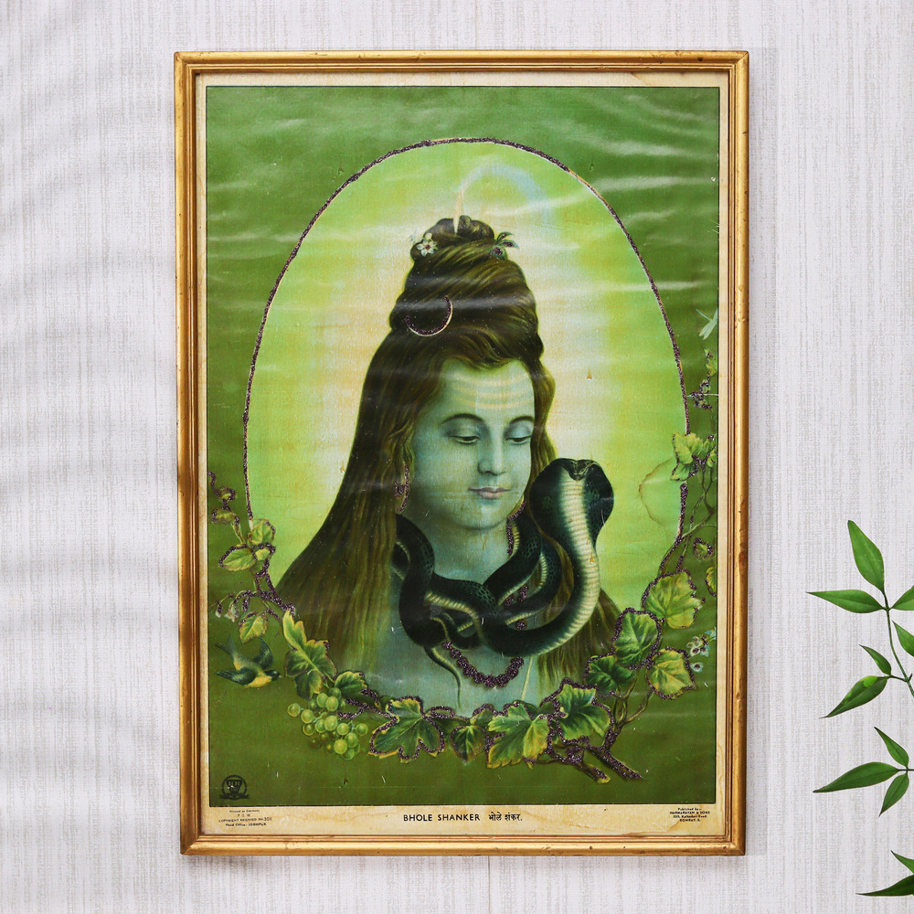 Prepare to be captivated by the mesmerizing presence of Lord Shiva, immortalized in this exquisite vintage print from the colonial era. Crafted with meticulous attention to detail in Germany, this work of art is a true testament to the enduring cultural exchange between the East and the West. This stunning print of Lord Shiva is more than just a decorative piece – it's a portal to a bygone era, a tangible link to the rich spiritual heritage of India. Display this exceptional work in your home or office, and let it inspire you to delve deeper into the profound teachings and mythology of the Hindu faith. Whether you're a collector of vintage art, a devotee of Lord Shiva, or simply someone who appreciates the intersection of cultures, this original print is a must-have addition to your collection. Immerse yourself in the captivating gaze of the Mahadeva and let this piece transport you to a world of timeless wisdom and spiritual enlightenment.