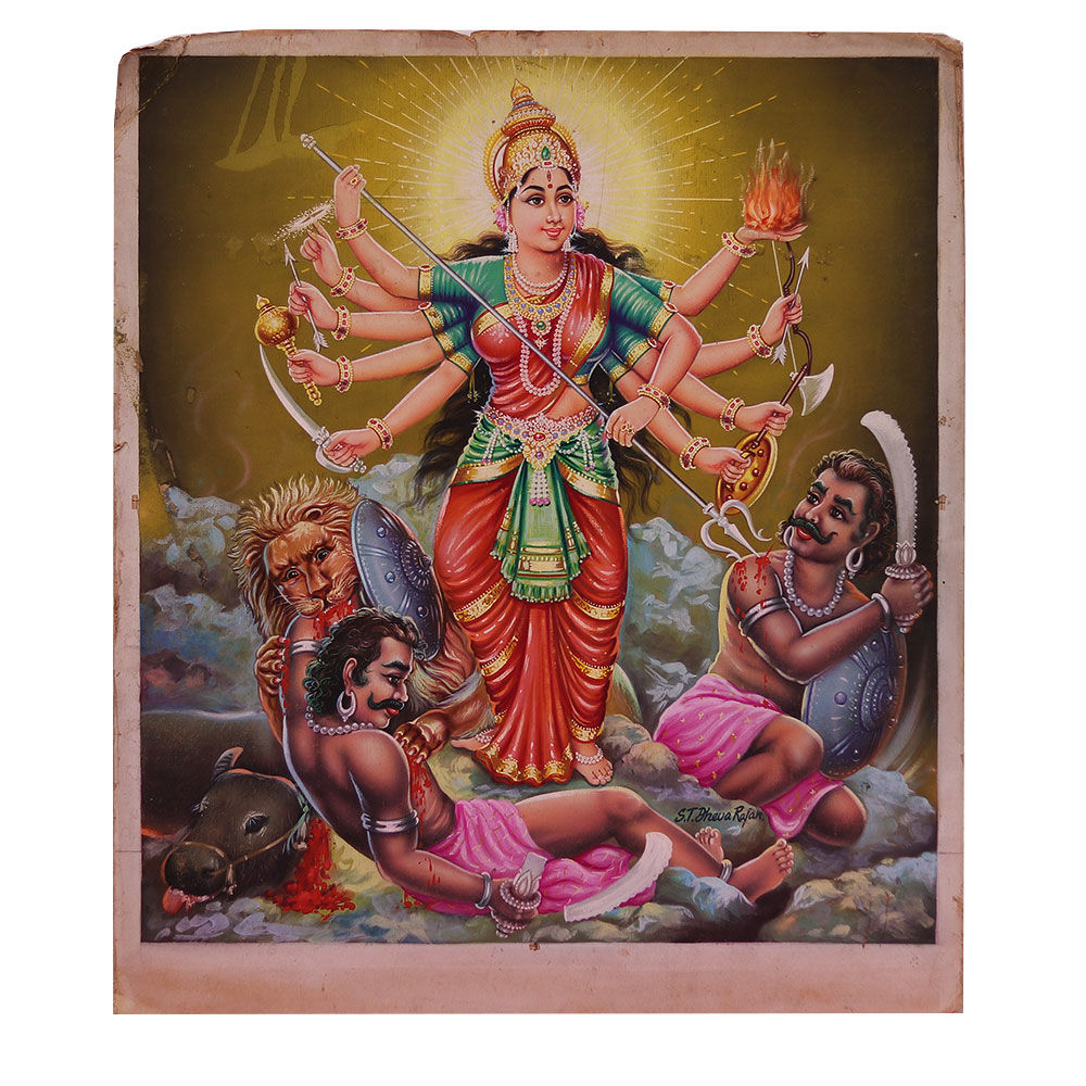 - Unique vintage Calendar art painting of the Goddess Durga