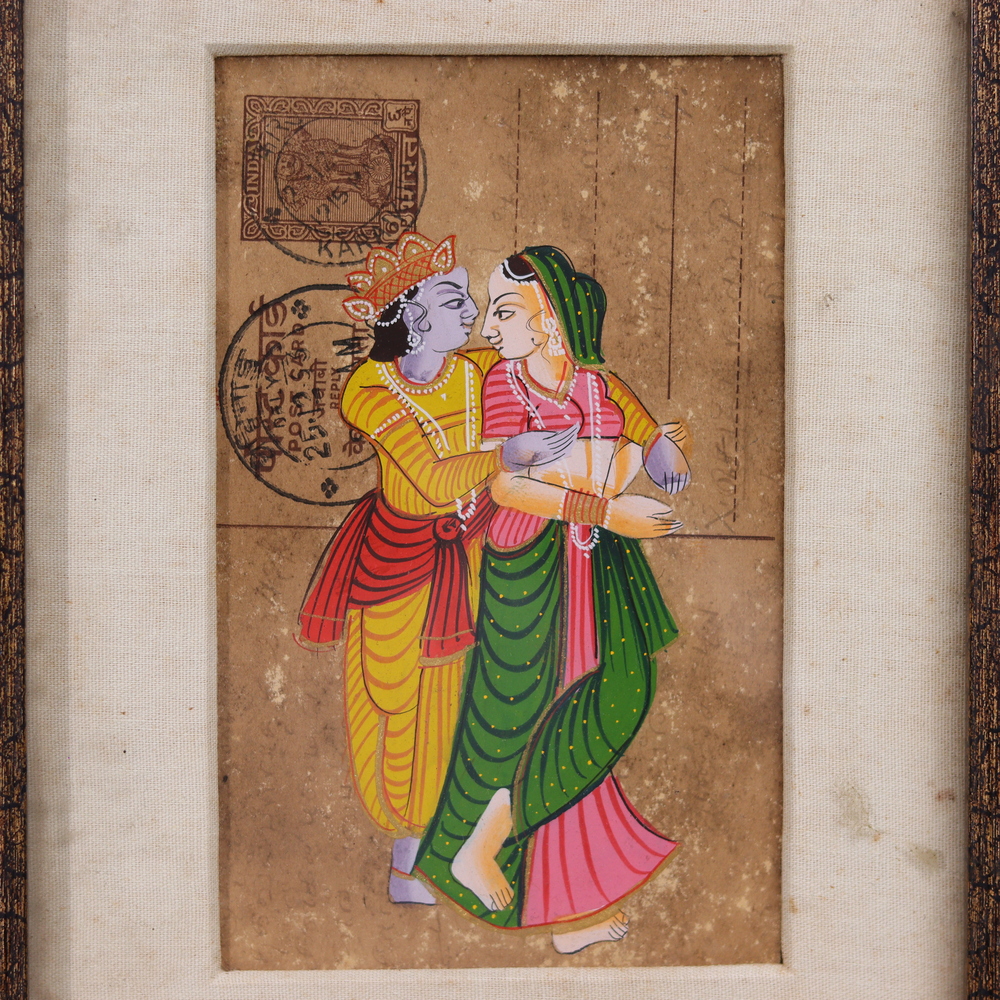 Immerse yourself in the captivating world of Indian spirituality with this exquisite vintage postcard featuring a stunning Radha Krishna stone color painting. Crafted with meticulous attention to detail, this one-of-a-kind artwork is a true testament to the rich cultural heritage of India. Step back in time and experience the timeless love story of Radha and Krishna, two of the most revered deities in Hinduism. This captivating postcard captures the essence of their divine union, with intricate details and a breathtaking color palette that evoke a sense of ancient splendor. Whether you display it proudly on your wall or share it with loved ones, this vintage gem will inspire a deeper appreciation for the beauty and spirituality of Indian art. Elevate your home decor and connect with the rich cultural tapestry of India. This Radha Krishna postcard is the perfect addition for spiritual seekers, art enthusiasts, and anyone who appreciates the enduring power of love and devotion. Embrace the timeless elegance of this exquisite piece and let it transport you to a realm of sacred beauty.
