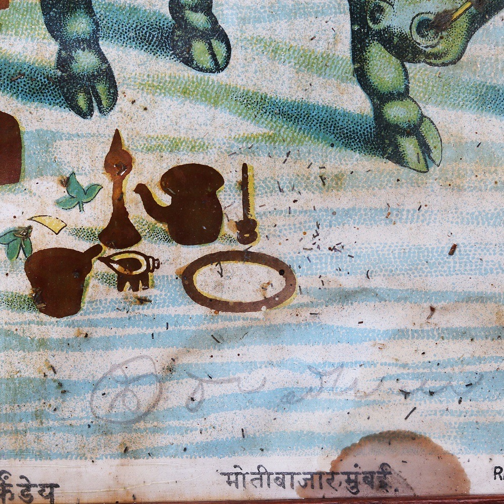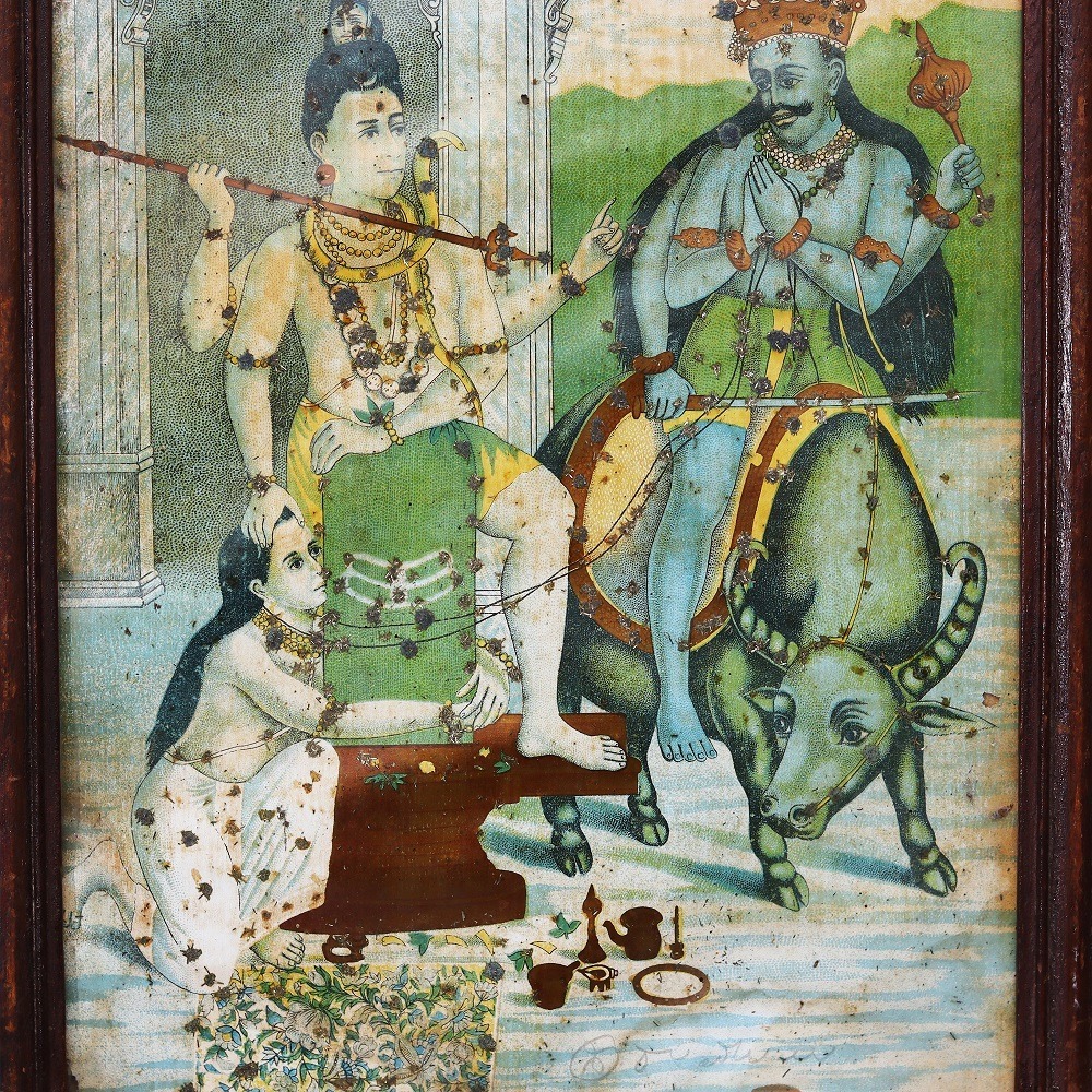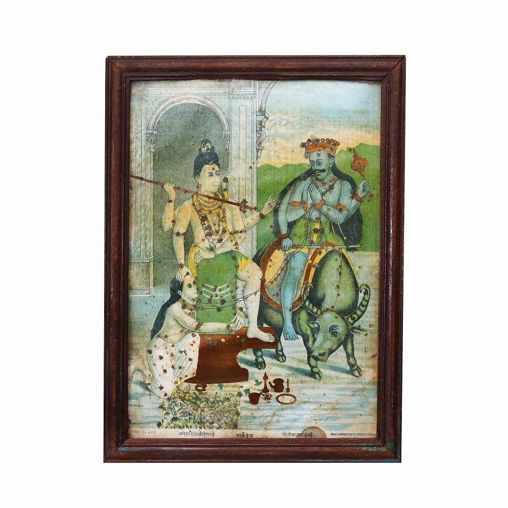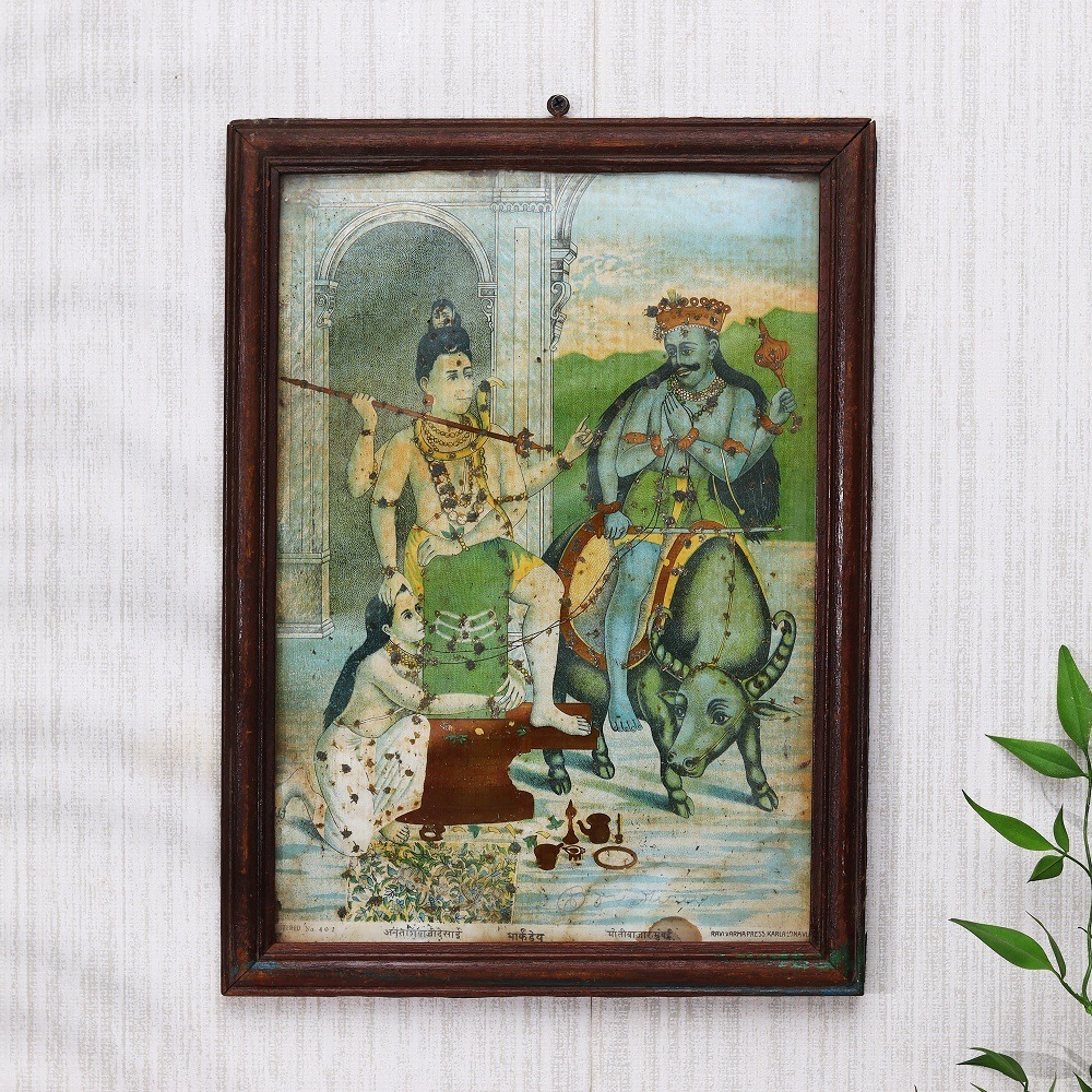 Unlock the captivating essence of India's rich artistic heritage with this exquisite original paper print from the legendary Ravi Verma press. Adorned with delicate silver accents that shimmer against a timeless backdrop, this vintage masterpiece is a true feast for the senses, transporting you to a world of unparalleled beauty and elegance. Imagine the awe-inspiring moment when you unveil this Ravi Verma original in your home or office. The intricate silver work adds a touch of opulence, while the vintage aesthetic evokes a sense of timeless sophistication that will captivate all who behold it. Whether you're a seasoned art enthusiast or simply seeking to infuse your space with cultural richness, this piece is sure to become a cherished centerpiece that sparks conversation and admiration. This Ravi Verma masterpiece is the perfect investment for the discerning individual who seeks to surround themselves with the finest expressions of India's artistic legacy. Immerse yourself in the captivating world of this renowned artist and let this stunning print inspire you to celebrate the enduring beauty of the past in the present.