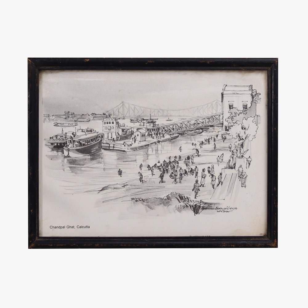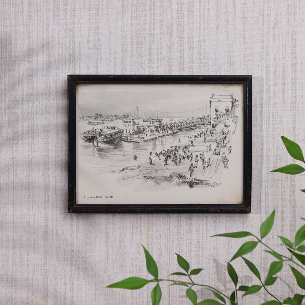 Discover the enchanting charm of Chandpal Ghat, Calcutta, with this stunning vintage print. Meticulously recreated from a rare, original artwork, this piece transports you to a bygone era when the city's riverside landscape was a bustling hub of activity and architectural grandeur. Immerse yourself in the timeless elegance of this riverside setting, where the past and present coexist in perfect harmony. Gaze upon the intricate facades of the buildings lining the Hooghly River, each one a testament to Calcutta's rich cultural heritage. Observe the constant flow of merchants, pilgrims, and passersby, bringing the scene to life with their vibrant energy. This vintage print is a must-have for anyone captivated by the allure of historic India. Whether you're a seasoned traveler, an art enthusiast, or simply someone who appreciates the beauty of the past, this piece will transport you to a world of architectural splendor and cultural significance. Hang it in your home or office, and let it inspire you to explore the wonders of Calcutta's storied past.