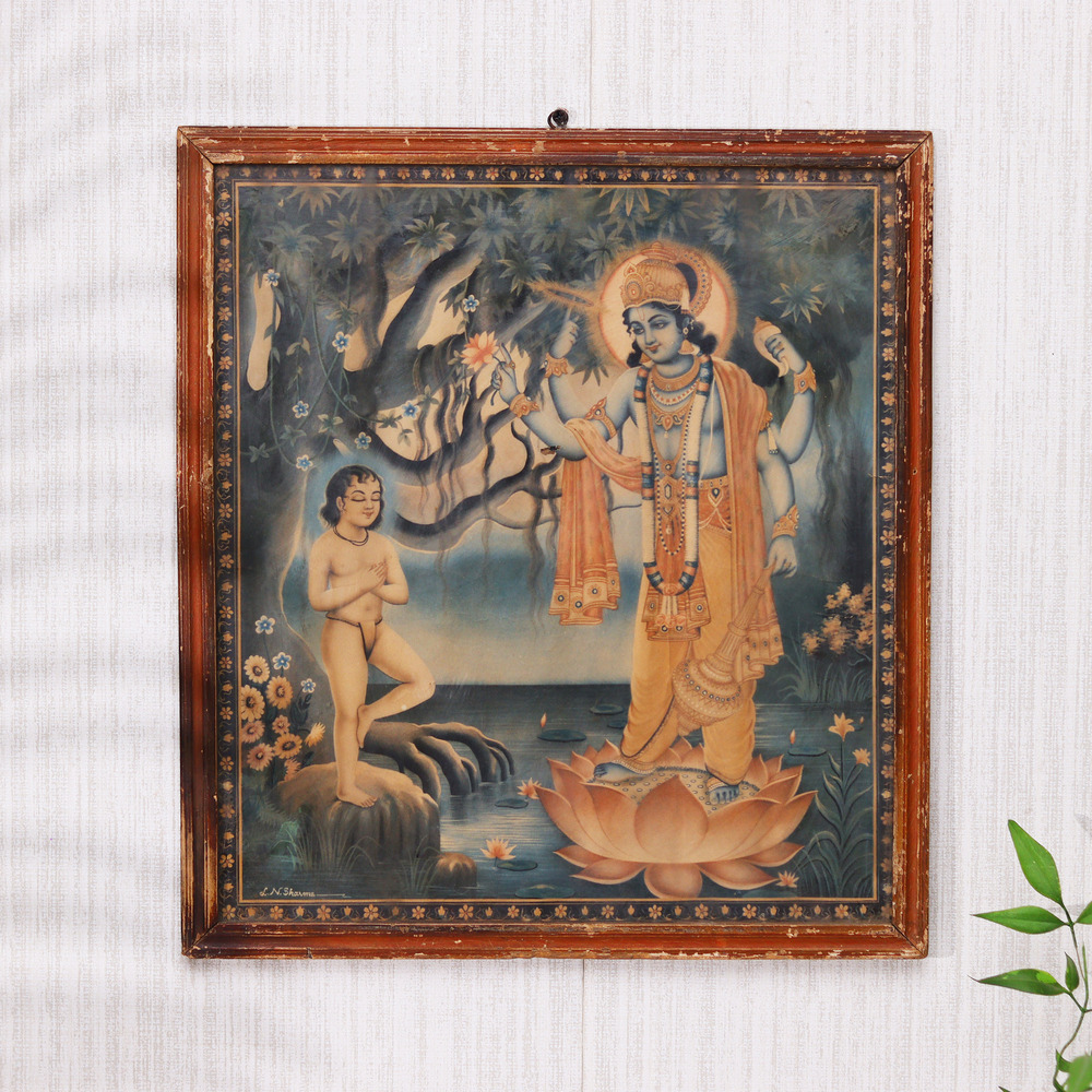 - Exquisite vintage original L.N. Sharma print of Lord Vishnu