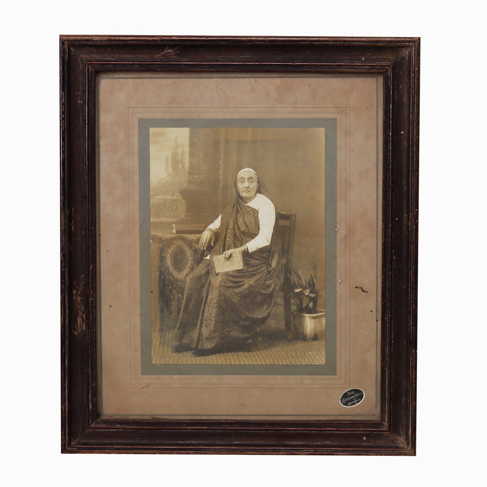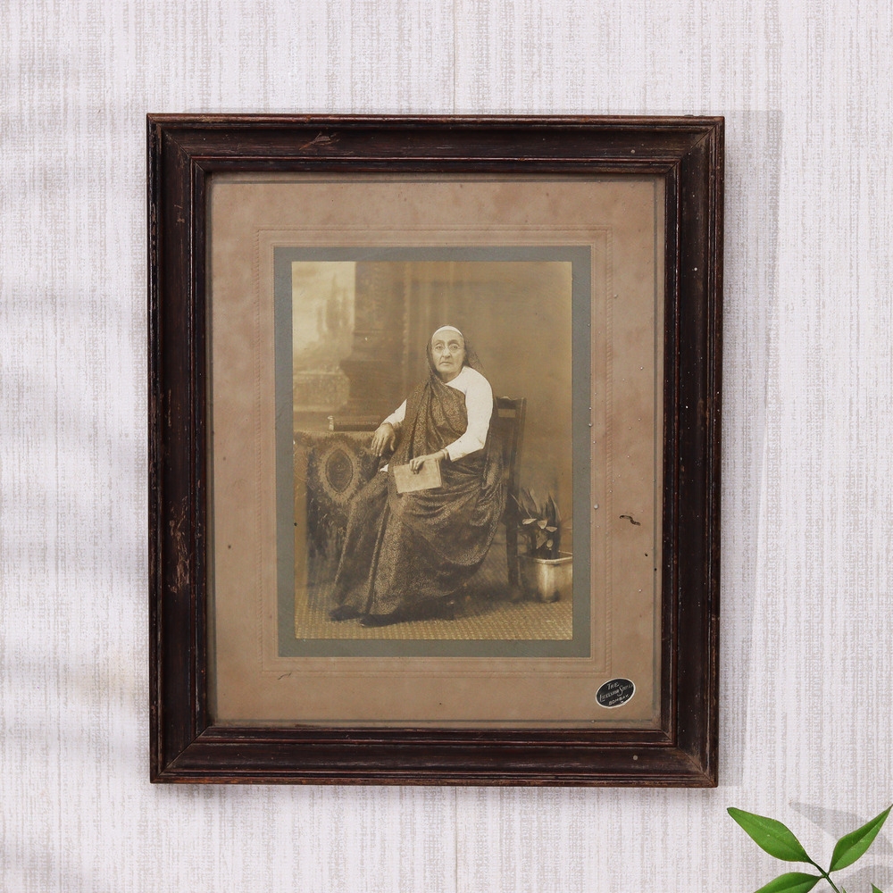 Immerse yourself in the captivating essence of India's regal past with this stunning vintage photograph of a Maharani. Meticulously preserved and framed in a handcrafted wooden enclosure, this piece offers a glimpse into a bygone era of unparalleled grandeur and refinement. The ornate wooden frame, with its intricate carvings, masterfully complements the timeless beauty of the photograph, creating a visually striking and culturally rich centerpiece that will elevate the ambiance of any space. Whether you're a history enthusiast, an admirer of traditional Indian art and culture, or simply someone who appreciates the allure of the past, this vintage photograph is a must-have addition to your home or office. Displayed prominently, this regal image will transport you and your guests to a world of unparalleled sophistication and grace, inspiring awe and wonder with every glance. Embrace the captivating essence of India's royal heritage and let this exquisite vintage photograph become a cherished part of your living or work environment.