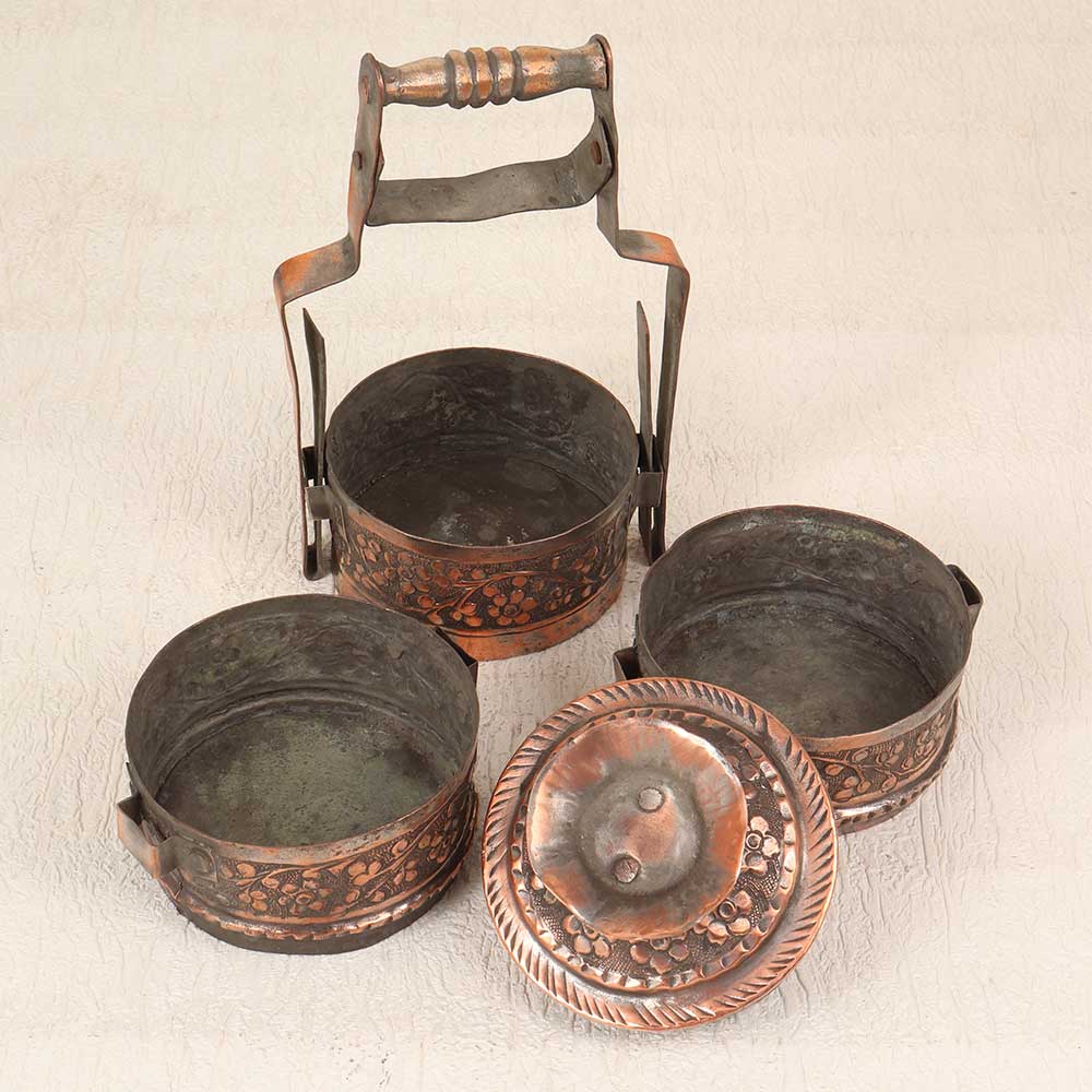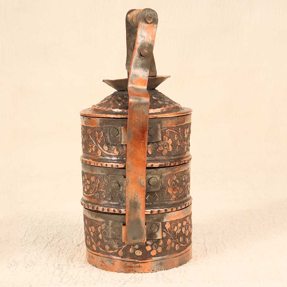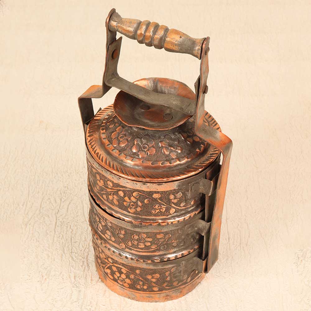 Carry a work of art with your lunch in the stunning Vintage Copper Lunch Box. Hand-engraved with classic Islamic motifs, this solid copper box surrounds your midday meal with beauty and meaning. The detailed engraving looks like it was passed down through generations, connecting you to time-honored traditions and artistic heritage. An antique patina finish enhances the vintage vibe. Give your collection a major upgrade with the Vintage Copper Lunch Box. Bring elegance, artistry, and cultural appreciation to your midday meal.