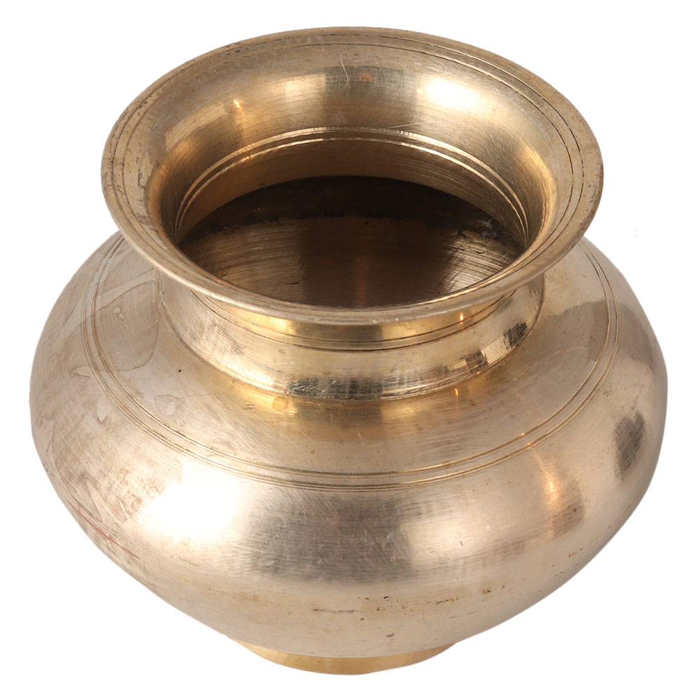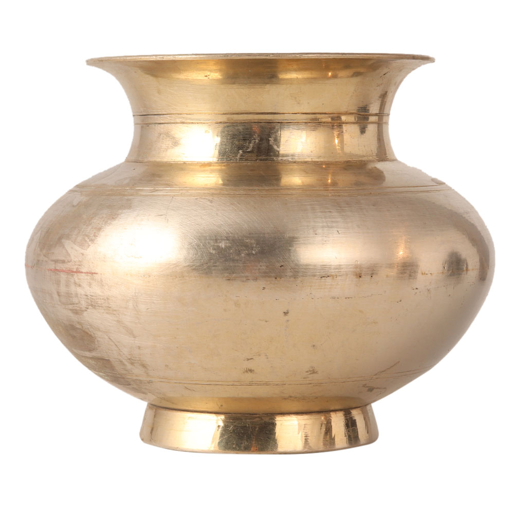 This shiny vintage water pot has a golden appearance. It is made of a white metal alloy. It can be used as a purna kalash in Hindu pooja. Beautify your home with this shiny water pot.