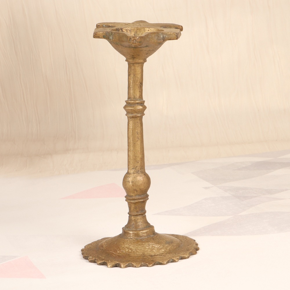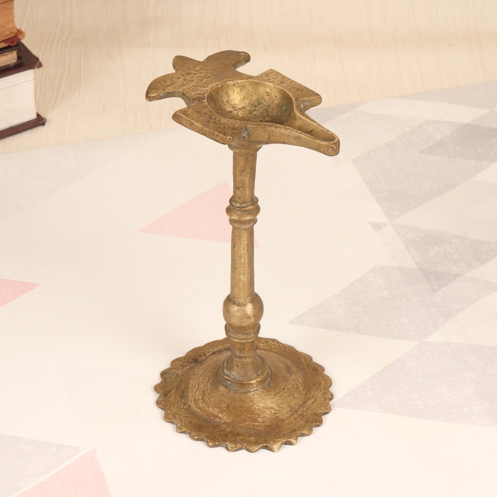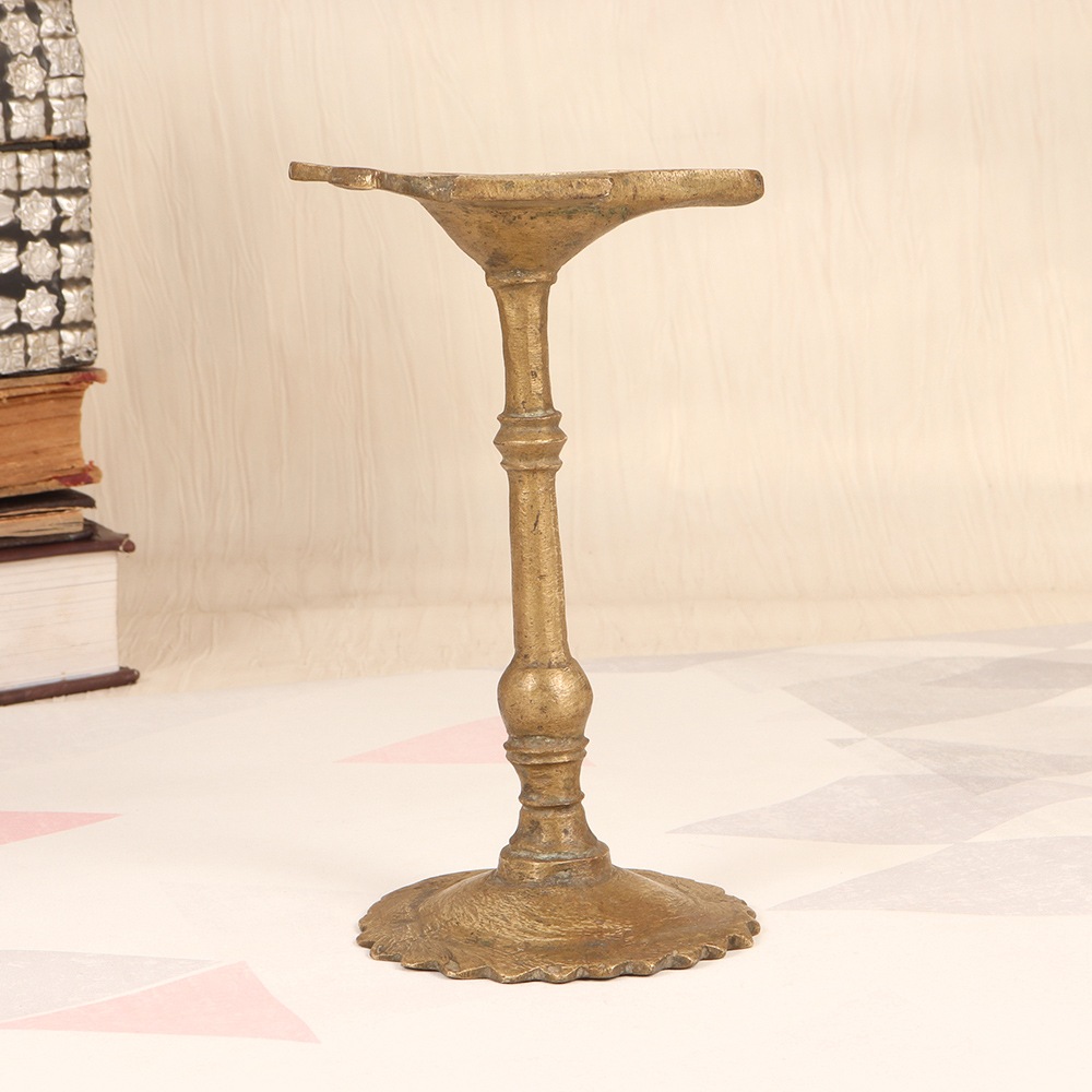 Step back in time and experience the captivating glow of a traditional South Indian oil lamp with our vintage brass masterpiece. Crafted with meticulous attention to detail, this lamp harnesses the power of natural illumination, filling your space with a warm, inviting radiance that will transport you to another era. Imagine the mesmerizing dance of flickering light as the flame dances atop the wick, casting a soft, soothing glow that soothes the senses and sets the mood. Whether you're looking to create a tranquil ambiance for meditation, or simply seeking a natural, eco-friendly lighting solution, this brass oil lamp is the perfect addition to your home. This lamp is a true testament to the rich cultural heritage of South India, where the art of oil lamp making has been passed down through generations. It's not just a functional piece – it's a work of art that will captivate and inspire all who behold it. Elevate your living space and immerse yourself in the timeless beauty of this stunning brass oil lamp.