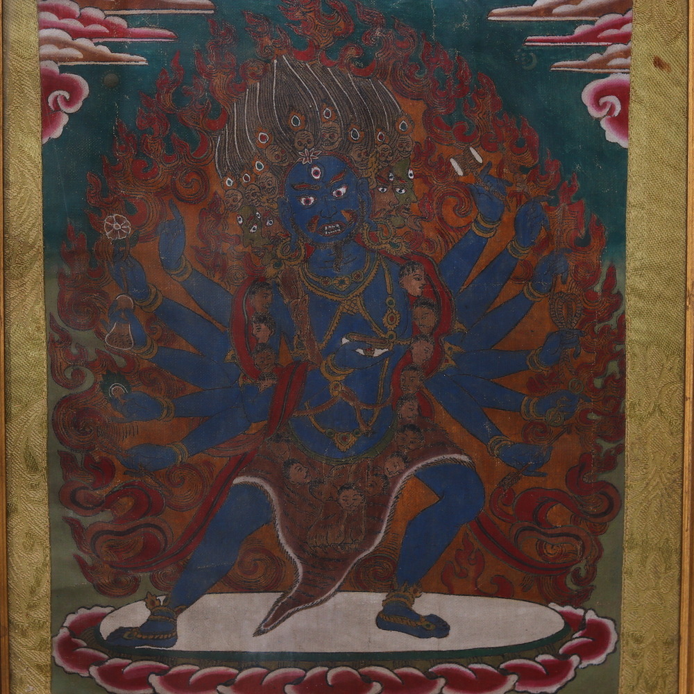 - Rare and well-preserved vintage Tibetan thangka painting of the revered Lord Shiva