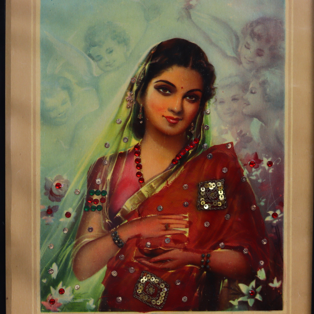 Escape the ordinary and surround yourself with the captivating elegance of the East. This Vintage Traditional Indian Lady painting is a stunning work of art that will infuse your space with the rich cultural heritage of India. This painting is a masterful blend of timeless tradition and modern artistry. The subject's poise and grace command attention, while the ornate cloth decor work surrounding her adds layers of visual interest and cultural significance. Whether you're drawn to the vibrant history of India or simply appreciate fine art, this painting is a must-have addition to your home. Elevate your decor and immerse yourself in the beauty of the East. This Vintage Traditional Indian Lady will transport you to distant lands with each glance, sparking your imagination and infusing your space with a sense of global wonder. Bring home this captivating artwork, and let it inspire you to explore the rich cultural tapestry of India.