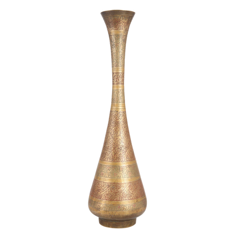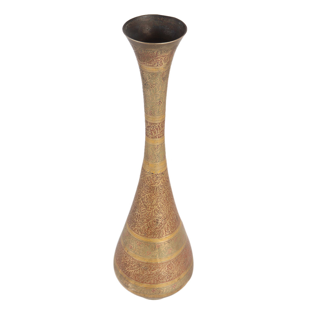 This used vintage flower pot is engraved with enamel work. This is a technique in which pots are given a vitreous glaze that is fused to the surface by intense heat to create an attractive decorative effect. It is made of brass alloy by skilled Indian workers from Hyderabad. It has an alluring design with a stand to hold it to the surface. Use it as an indoor flower pot to beautify your interior decor. Decoration for stage, wedding, birthday or corporate parties.