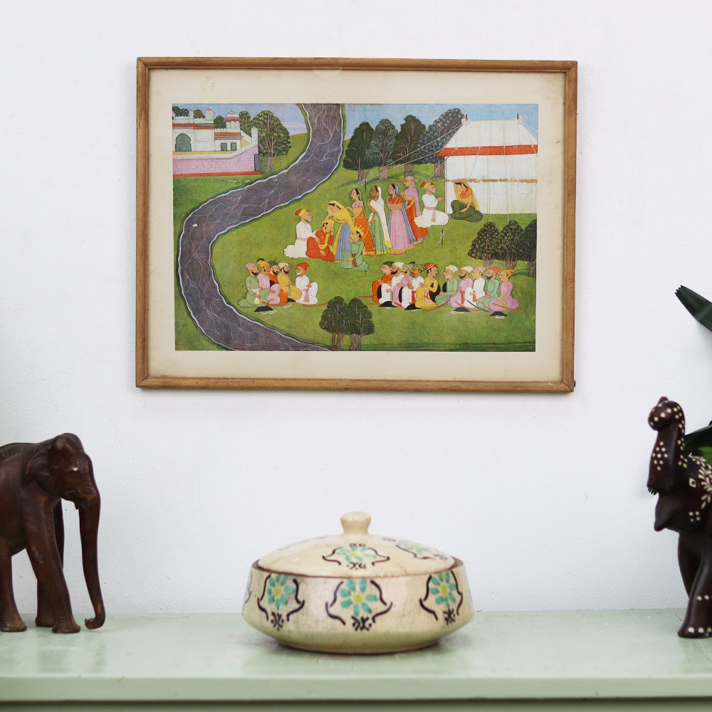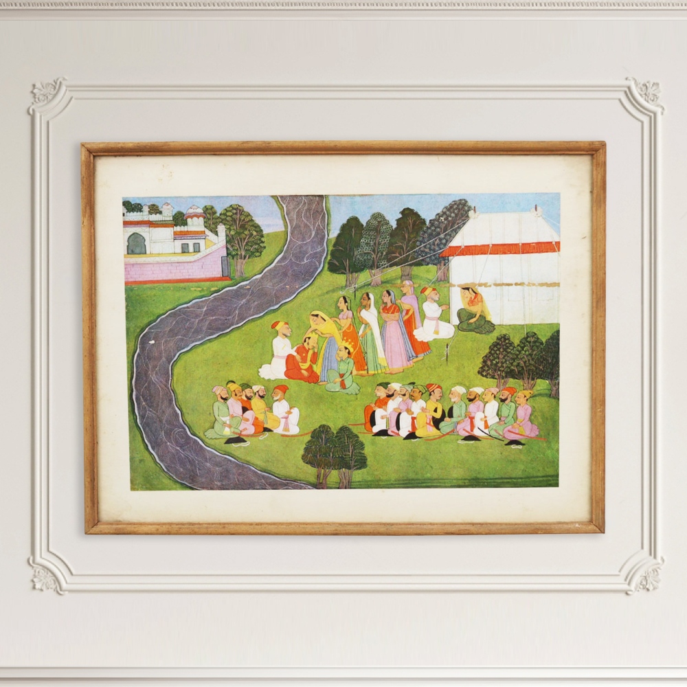 Unlock the secrets of the Himalayas with this breathtaking vintage Kangra art print. Crafted with meticulous attention to detail, this piece celebrates the rich cultural heritage of India's mountain region. Escape to the majestic Himalayas with every glance at this stunning Kangra art print. The vivid colors and delicate brushstrokes transport you to a world of timeless beauty, where the grandeur of the mountains and the artistry of the Kangra tradition converge. Whether you're an art connoisseur or simply seeking to add a touch of cultural elegance to your home, this vintage print is sure to captivate and inspire. Elevate your living space with the timeless charm of this Kangra art print. Hang it in your living room, home office, or any area that needs a dose of artistic sophistication. Immerse yourself in the rich history and breathtaking scenery of the Himalayas, and let this vintage print become the centerpiece of your décor.