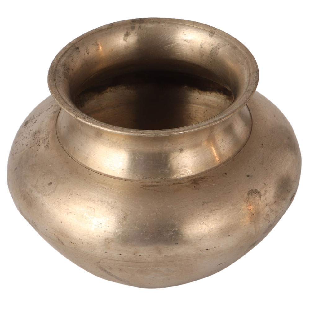 The plain, used Kalash water pot has a shiny appearance. It is carved from a white metal alloy and has a flat bottom to stay on the surface. It can be used to decorate home and office. Place it as a flower pot on tables or shelves in your restaurant or bar to attract your customers.