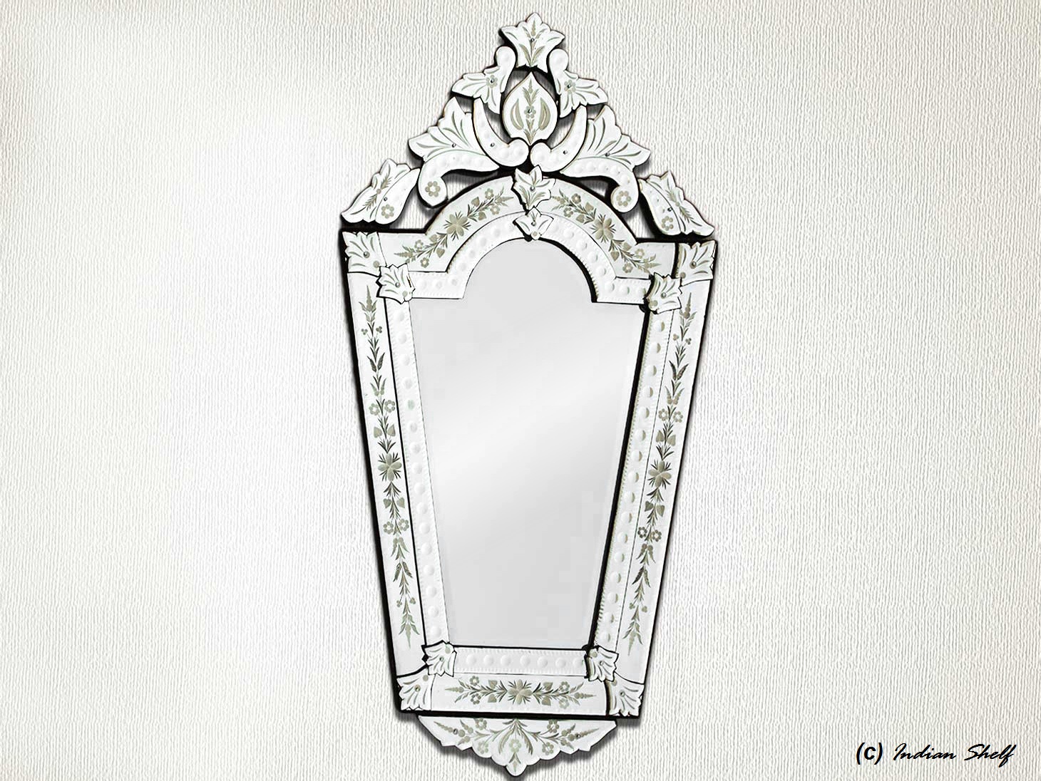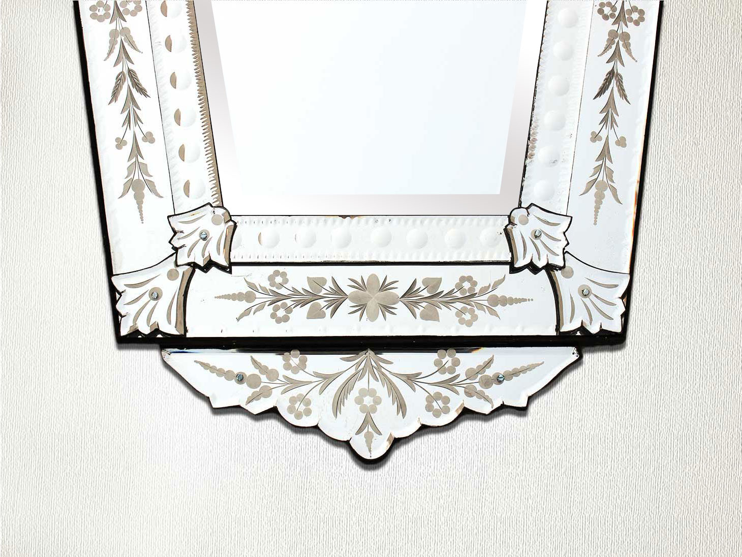 Vintage Venetian Mirror-44 inches X 24 inches.A simple way to incorporate an elegant look into any room is the addition of Venetian mirrors these treasured pieces reflect light and serve as an artistic focal point transforming a room into a glamorous environment with a bit of old world elegance.