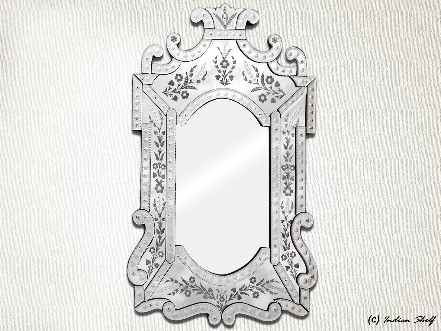 Vintage Venetian Mirror-48 inches X 29 inches.A simple way to incorporate an elegant look into any room is the addition of Venetian mirrors these treasured pieces reflect light and serve as an artistic focal point transforming a room into a glamorous environment with a bit of old world elegance.