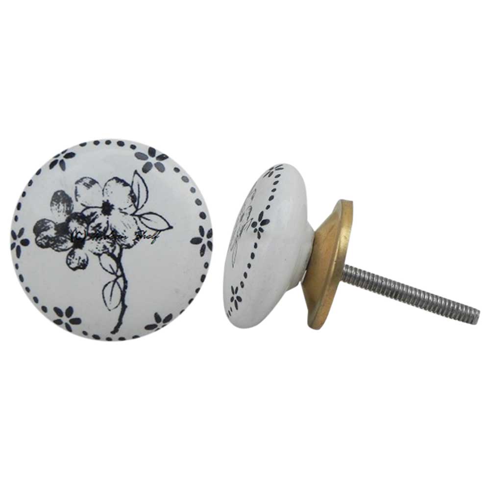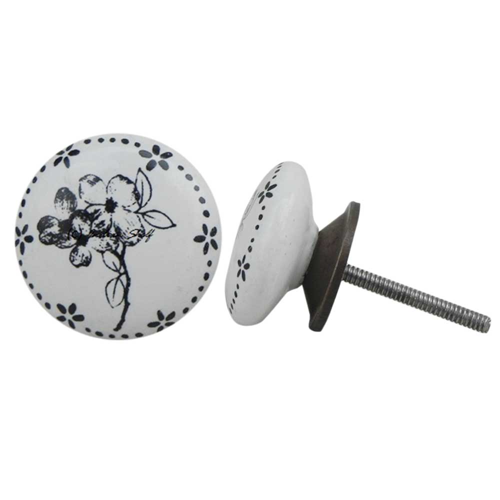 Violets Flower Flat Ceramic Knob. Ideal for kitchen cabinets, kitchen drawers, dining room, bed room, chest drawers, dressing tables, almirah