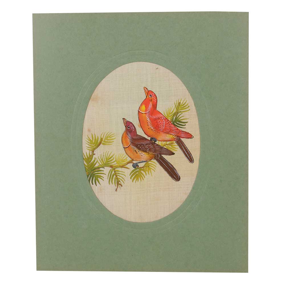 Colorful Sparrow couple perched on branch, bird wildlife image illustrated in hand drawn oil pastel painting on silk Fabric.