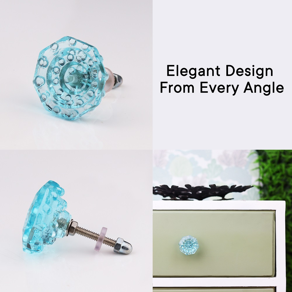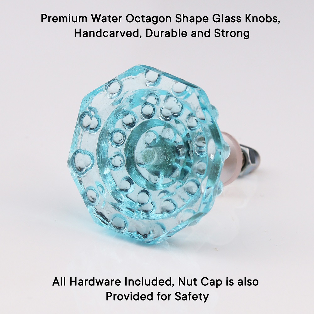 Water Octagon Shape Glass Cabinet Knobs Online. Ideal for Drawer, Dresser, Cabinet, Wardrobe, Cupboard and Almirah etc.