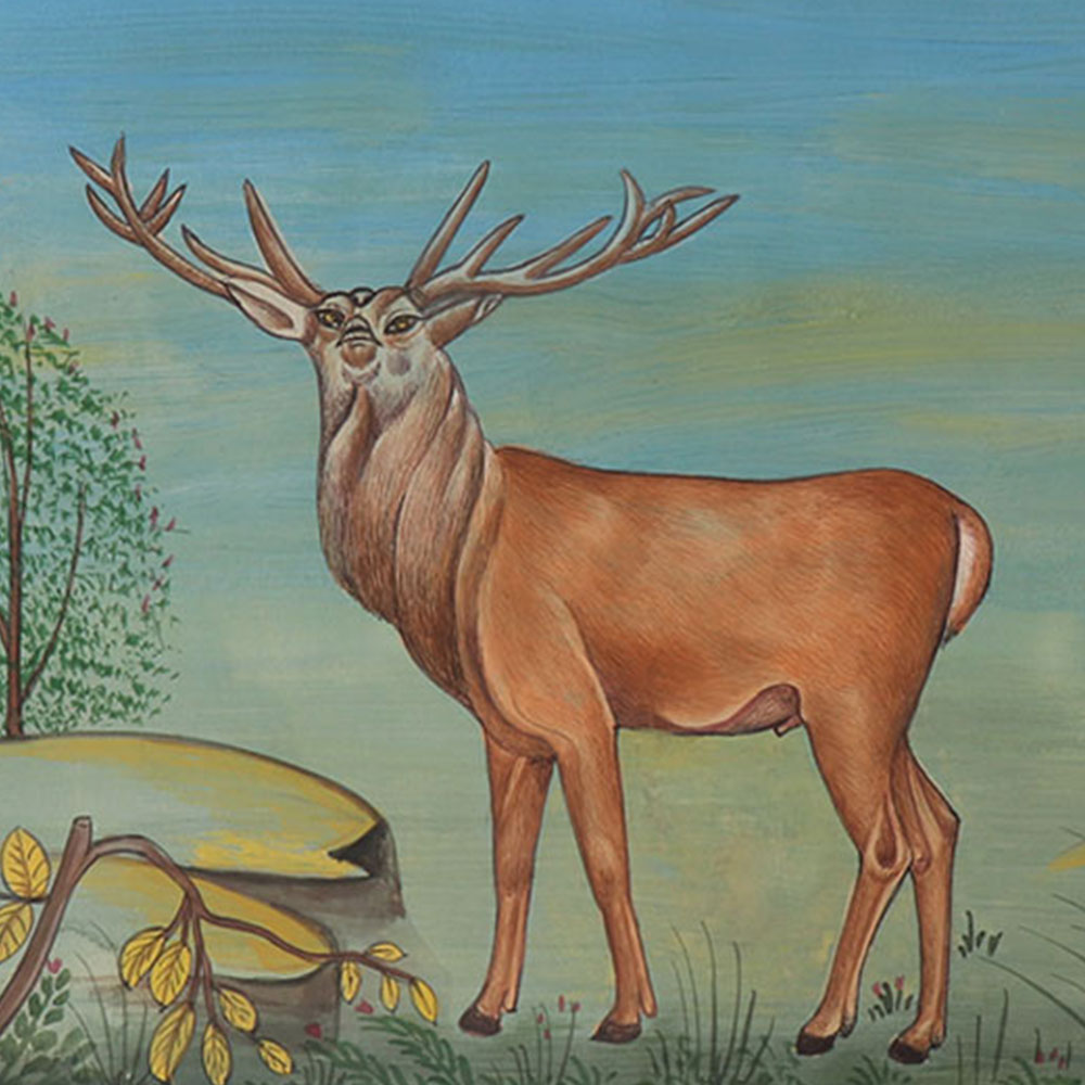 You want to use a lovely painting of Deer in forest on a grayish blue backdrop that is encased in a fibre frame to beautify your home. Standing on some grass, the deer appears at ease and would bring a sense of peace to the home. You could give this artwork as a present to someone who like wildlife painting.