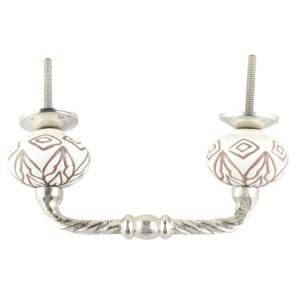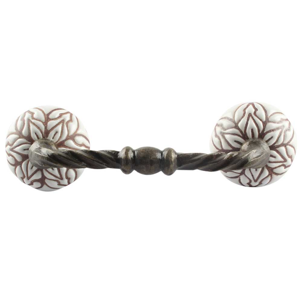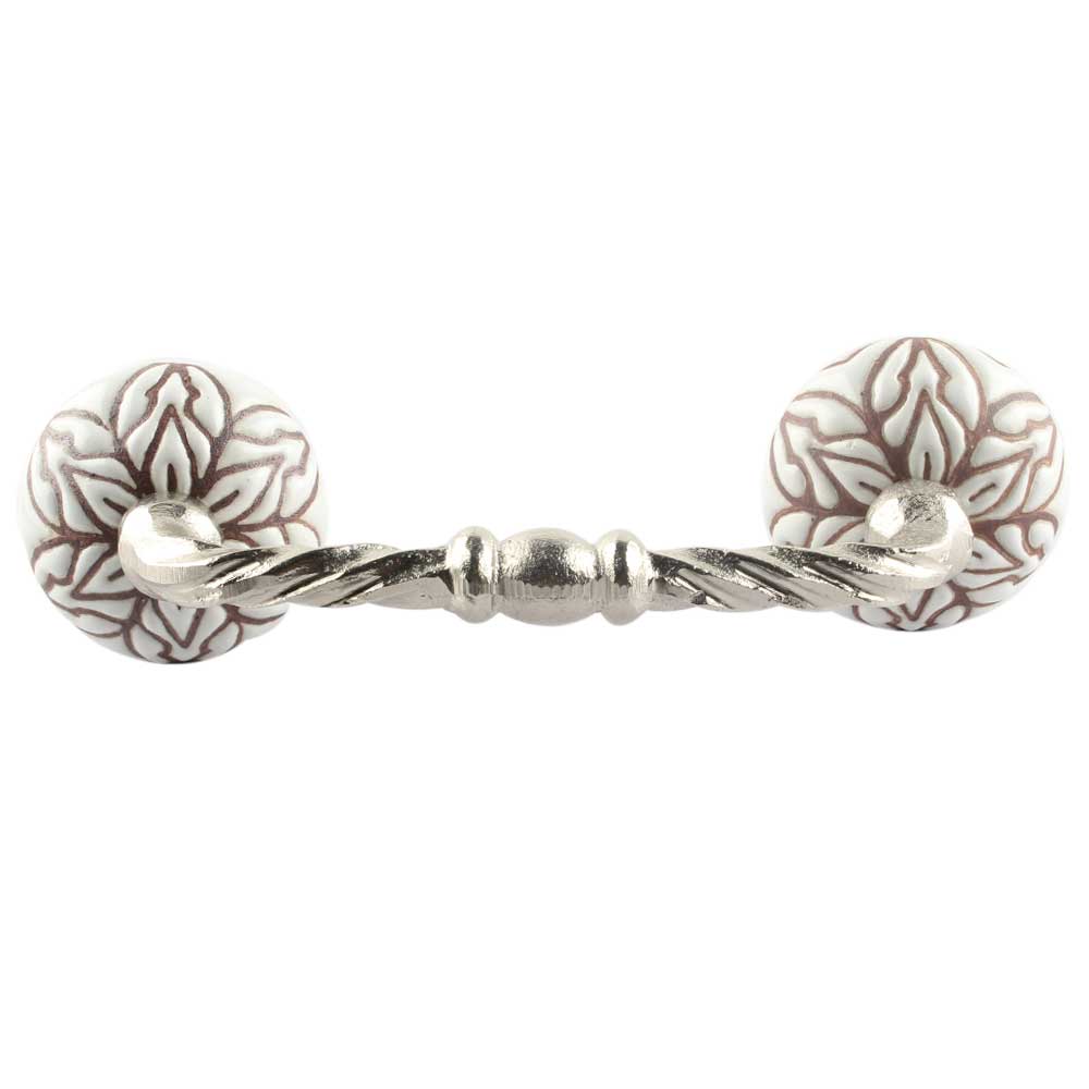 White amaryllis Floral Etched Ceramic Cut Bridge Handle. Ideal for Drawer, Dresser, Cabinet, Wardrobe, Cupboard and Almirah etc.