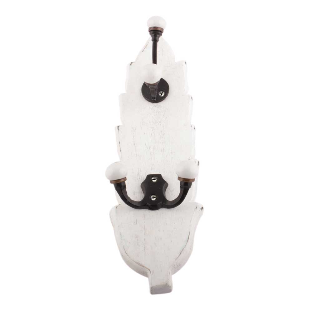 White And Black Double Loop Ceramic Iron Wooden Hooks. A Perfect Complement to the Soft Tone of the Wood are these White Traditional Hat and Coat Hook Made of Genuine Porcelain and Brass. It can be used to Hang Jewelry, Leashes, Towels, Scarves, Light Weight Sweaters, Caps etc.