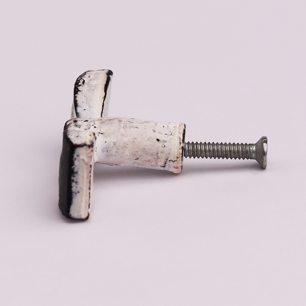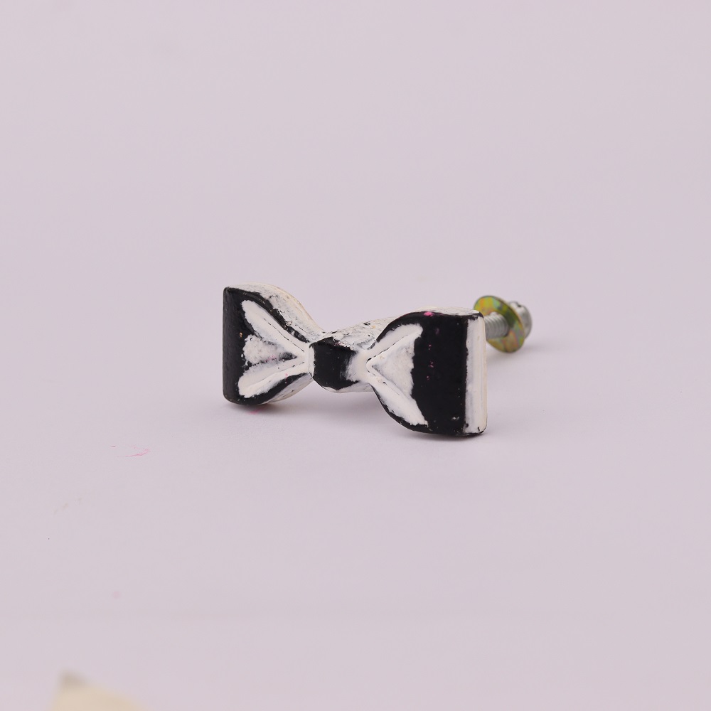 Crafted from iron, the White and Black Iron Bow Cabinet Knob offers robust durability while maintaining its sleek appearance. Designed to stand the test of time, this knob will remain sturdy and functional even after years of use. The iron construction ensures that the knob not only looks good but also withstands the wear and tear of everyday life, making it a smart and long-lasting addition to your furniture.