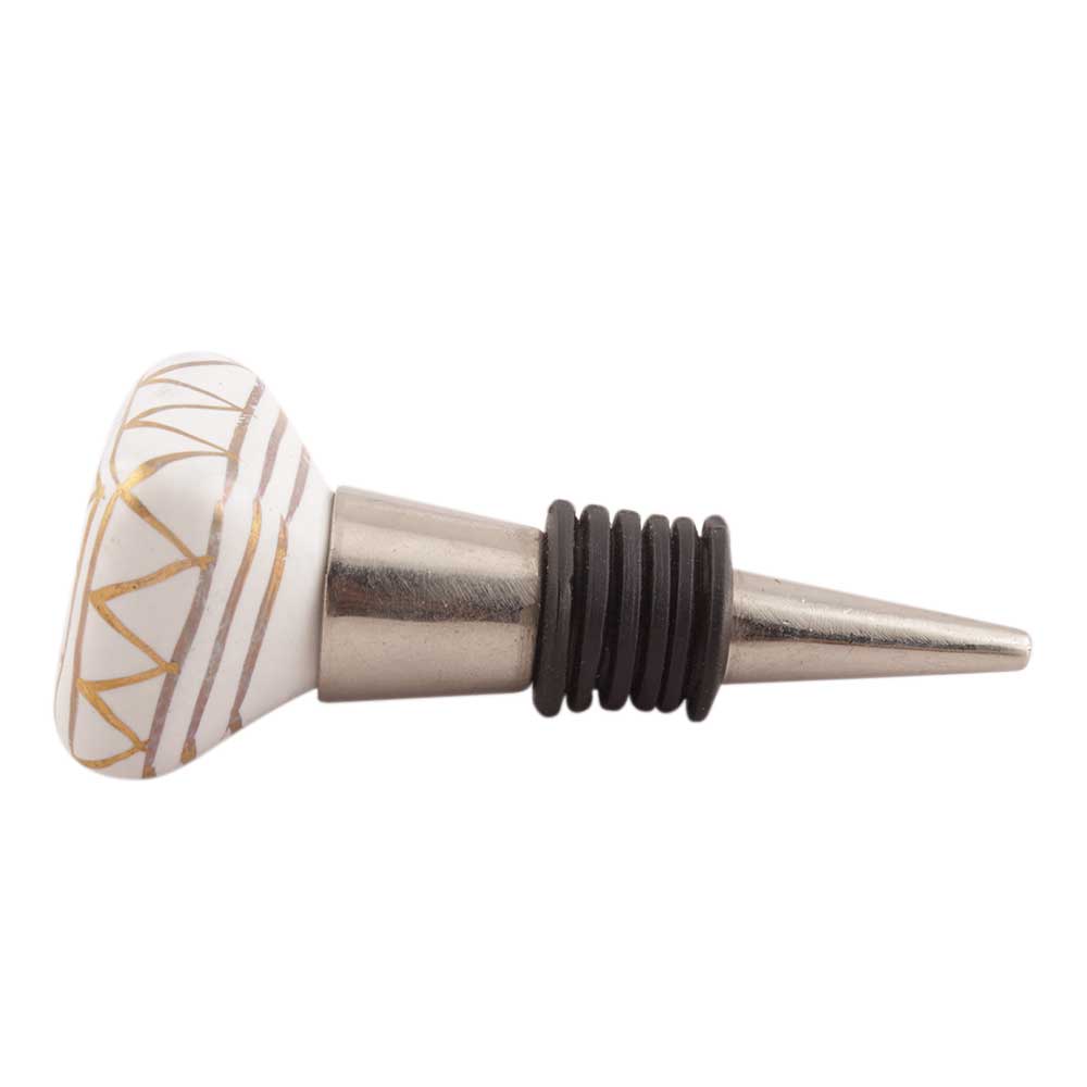 The ceramic top of the wine stopper is hand-painted with white and gold accents, offering a refined, luxurious feel. The square design adds a modern twist to the traditional wine stopper, while the golden detail enhances its overall elegance. This stopper is crafted with precision to ensure it not only complements your wine bottles but also provides an airtight seal that helps preserve the flavor of your wine.