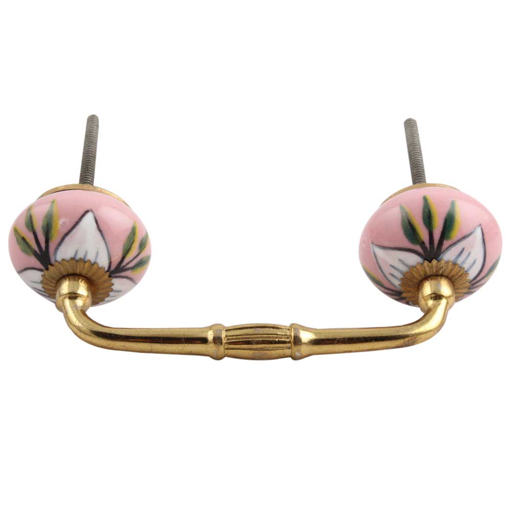 White and Green Leaf Ceramic Bridge Handle. Ideal for Drawer, Dresser, Cabinet, Wardrobe, Cupboard and Almirah.
