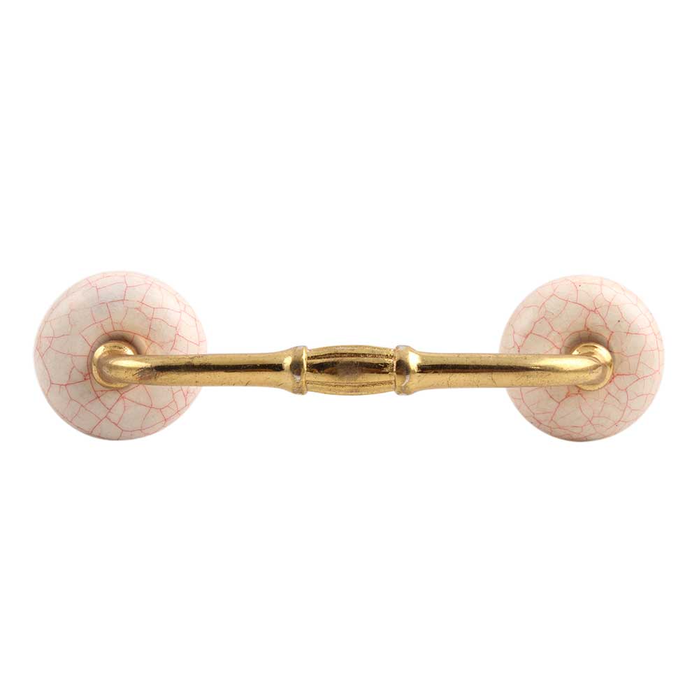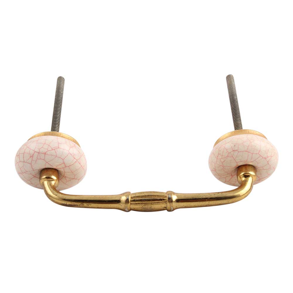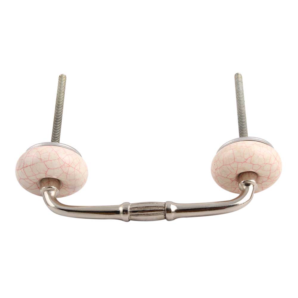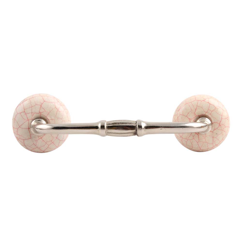 White and Pink Crackle Ceramic Bridge Handle. Ideal for Drawer, Dresser, Cabinet, Wardrobe, Cupboard and Almirah.