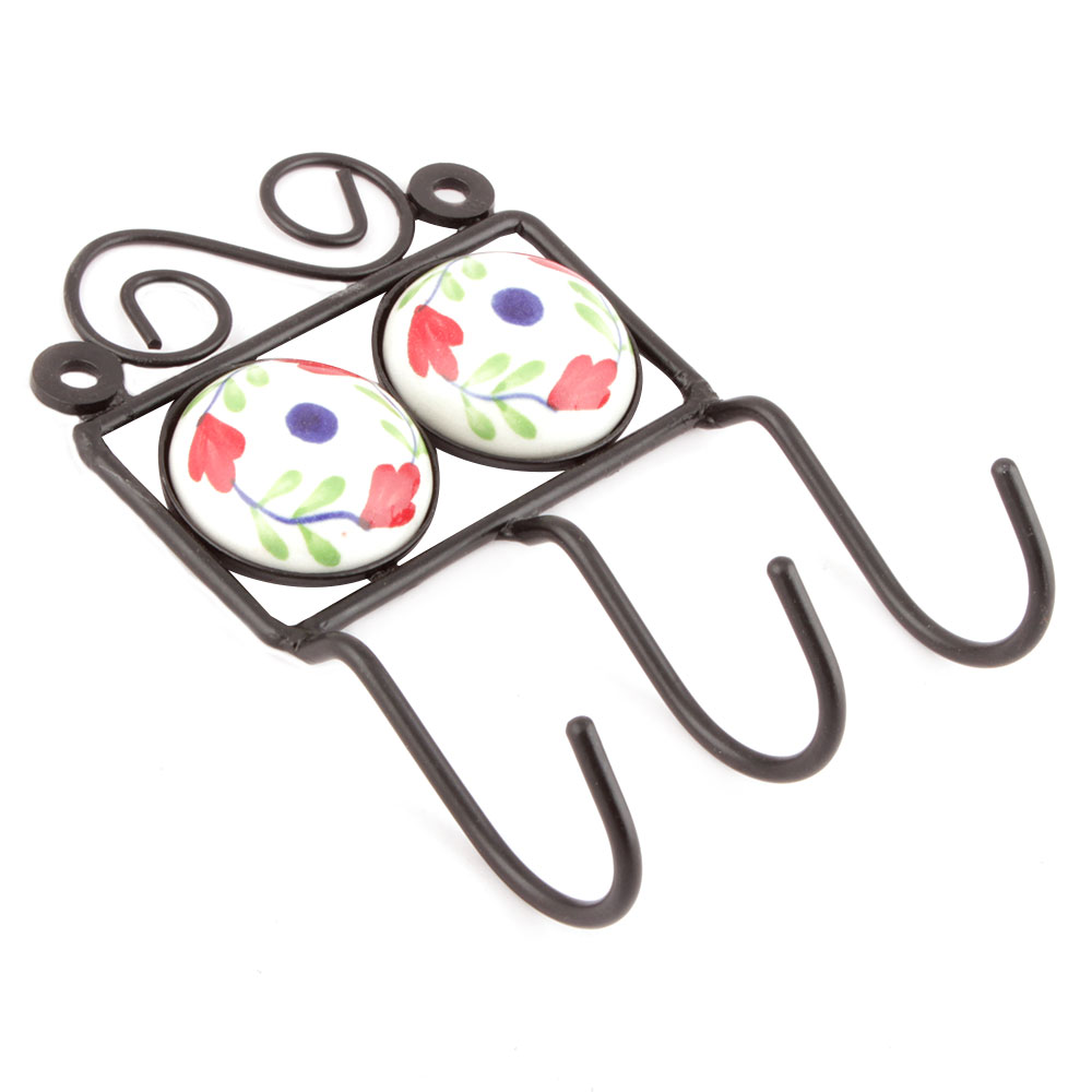 White And Red Leaf Floral Tiles Hooks. When Put on Wall or Cabinet it is an Art in itself. The Metal Part of this Hook is Black Powder Coated.