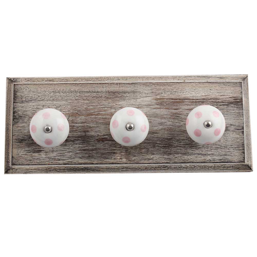 White Baby Pink Dot Wooden Hooks . A Perfect Complement to the Soft Tone of the Wood are these White Traditional Hat &Amp; Coat Hook Made of Genuine Porcelain and Brass. It can be use to Hang Jewellery, Leashes, Towels, Scarves, Light Weight Sweaters, Caps Etc.