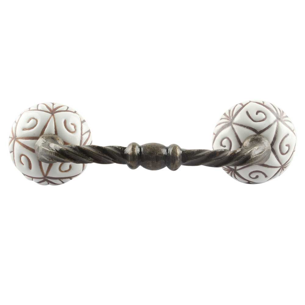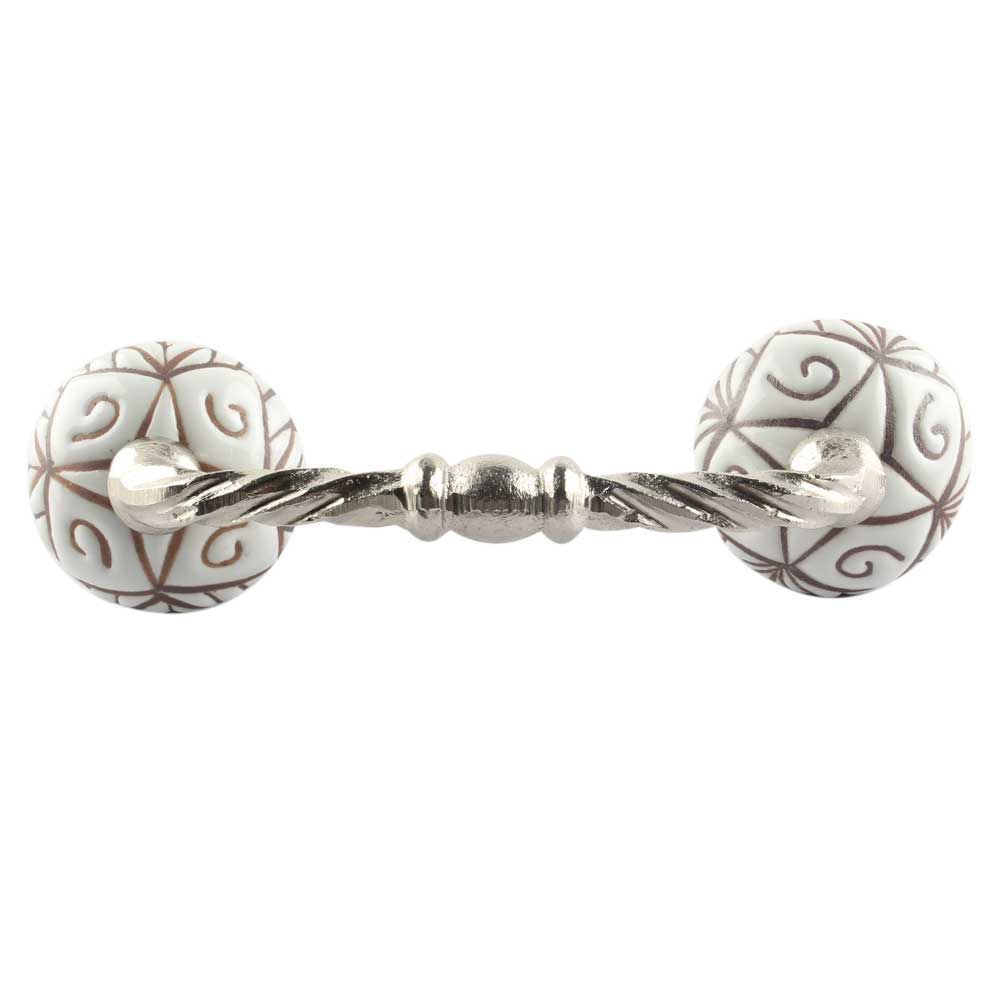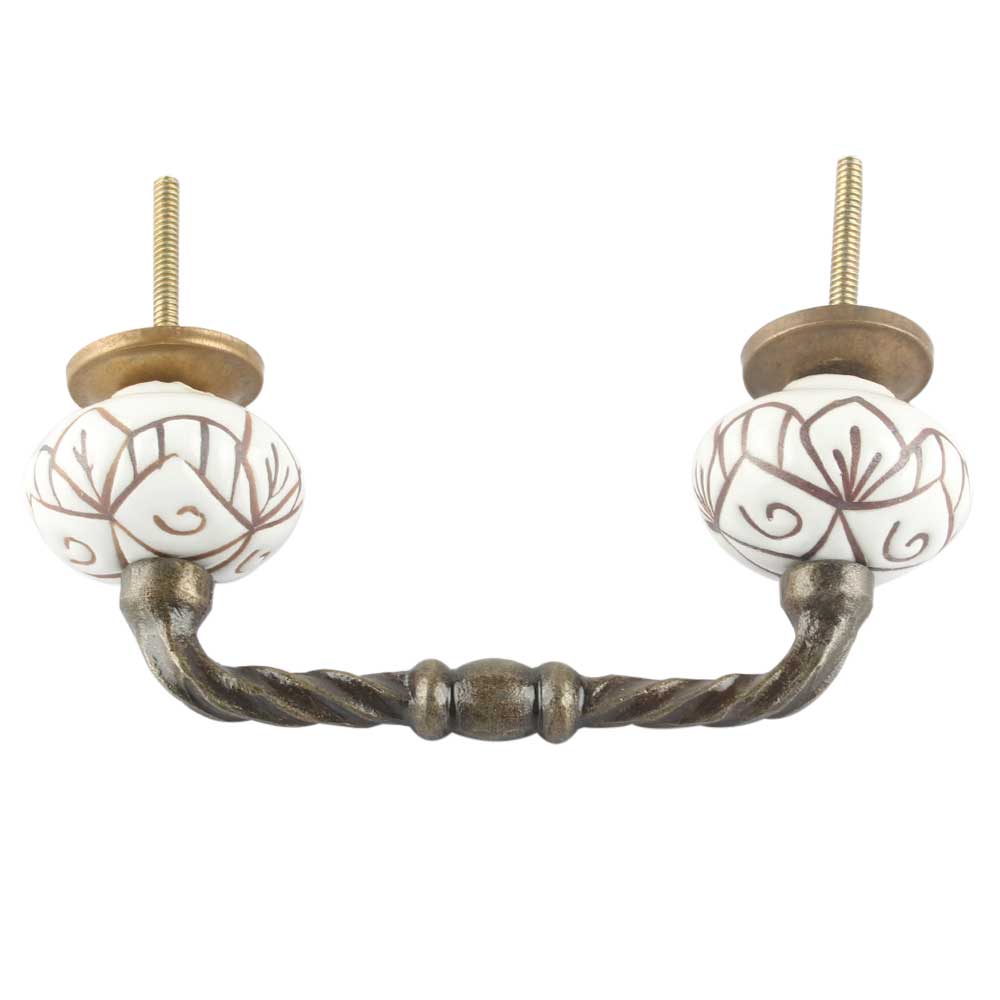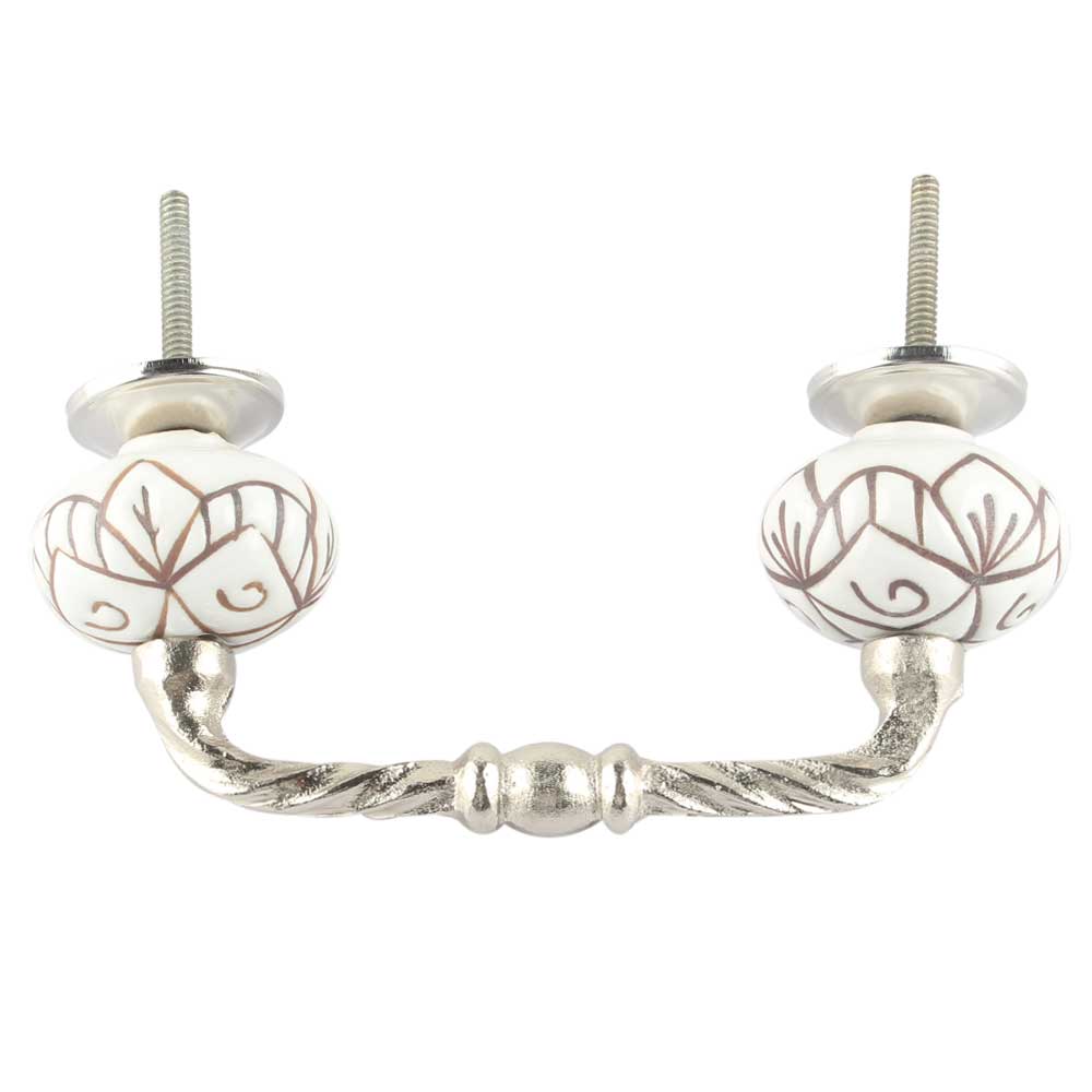 White Base Brown Etched Ceramic Cut Bridge Handle. Ideal for Drawer, Dresser, Cabinet, Wardrobe, Cupboard and Almirah etc.